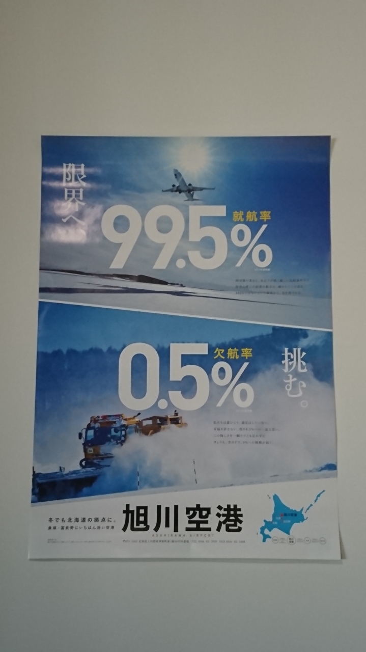 旭川市内から空港連絡バスで30分くらい。東京羽田線が7便、名古屋(中部)線が1便、LCCの台北線が1便、季節運行の大阪(関西)線だけなので、便数や利便性は新千歳空港とは比べ物になりませんが、道内のどこの空港よりも勝っているのが99.5%という驚異的な就航率。欠航率0.5%は、新千歳空港の5.7%と比べるとそのすごさがわかります。新千歳空港が全便欠航というケースは毎年数回ありますが、旭川空港はまずない。北海道の大きな地震の際も全便欠航便が出ませんでした。便数が少ないこともありますが、長年培ってきた除雪ノウハウもあるようです。旭川は、道内の中央部に位置しており、稚内方面、北見・網走方面への特急が発着する駅もあり、札幌へも特急ライラック・カムイで1時間半。空港にラウンジがない、お土産店やレストランが貧弱など、新千歳空港とは設備面では比べ物になりませんが、欠航リスクを考えるなら、旭川空港はオススメです。