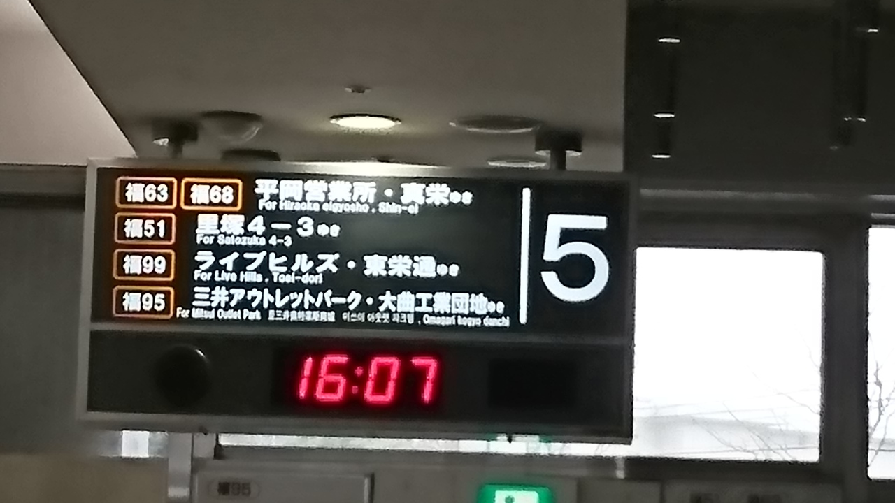 札幌市郊外のバスターミナル。地下鉄東豊線の福住駅と直結しており、美しが丘や羊ヶ丘、大谷地、北広島なとをはじめ周辺地域向けのバス路線のほか、新千歳空港への連絡バスや三井アウトレットパークも発着しています。空港連絡バスや三井アウトレットパーク行きのバスは札幌市内からも発着していますが、国道36号線は昼間でも混雑することが多いので、こちらを経由するルートの方が時間は確実です。地下鉄の改札口からは少し歩きますが、イトーヨーカドー福住店とも直結しており、2階への直通エスカレーターもあり便利。北海道だけあって自動ドアで仕切られているので、寒さには強い。
