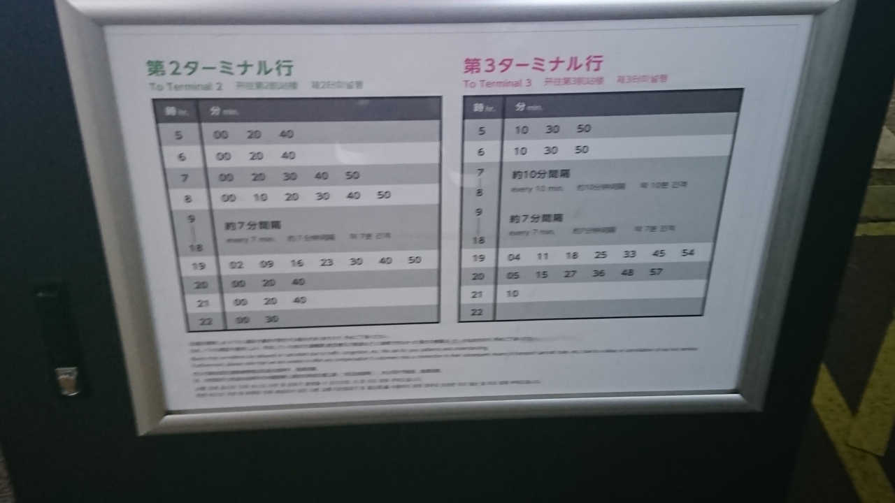 の3つあり、第1ターミナル~第2ターミナル間が10分、第1ターミナル~第3ターミナル間が10分、第2ターミナル~第3ターミナルが3分。
