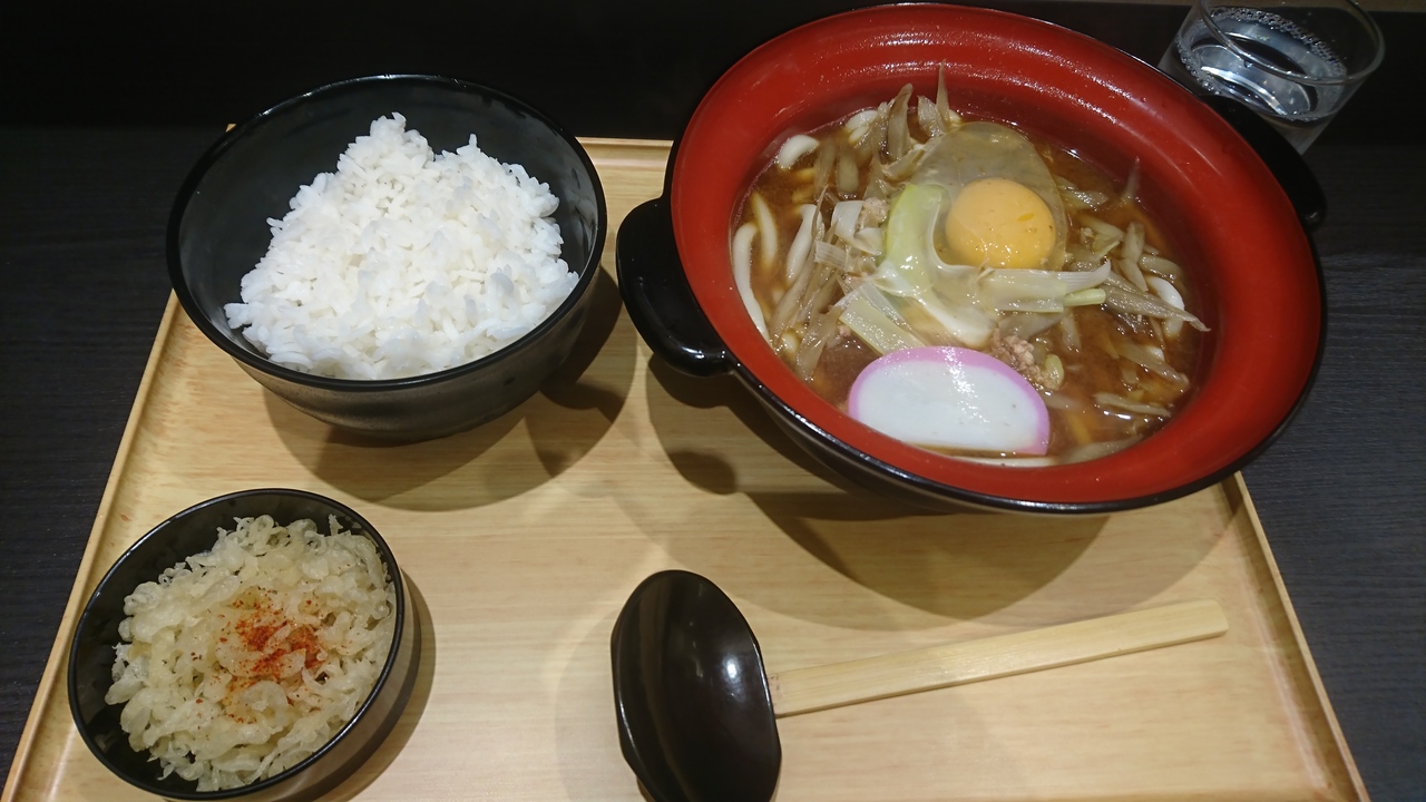 中央通り、末広町駅近くにあるお店。以前は道を挟んだ反対側にも小諸そば末広町店がありましたが、こちらのお店のリニューアルと同時に閉店。こちらはテーブル席、カウンター席も和風な感じになり、女性でも気軽に入れるお店に。店員さんが、「蕎麦湯はどうですか?」と声をかけてくれるように。とはいえ価格も変わっていないので、庶民の見方であることには変わりはなく。温かそうなものと思って、限定メニューの「味噌煮込みうどん」を注文。うどんも普通のうどんなのコシもなく、名古屋で食べたものとは別物(480円なのだから仕方がない)でしたが、逆に別物と割りきれば美味しい。