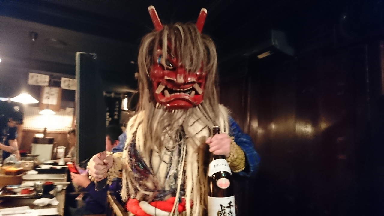 秋田駅から徒歩15分。秋田随一の繁華街「川反」(大町)にある秋田料理のお店。お店のいろりを囲んだコの字型のカウンター席とテーブル席がありますが、訪問したのが金曜日の夜だったこともあるのか、結構埋まっていました。観光向けのお店と思いきや、秋田弁の会話をかなり耳にするので、地元の方の利用も多いようです。秋田名物のハタハタ寿司やどんぶり、いぶりがっこなど郷土料理がメインですが、いぶりがっこを使ったピザ(いぶりがっこを歯応えとチーズのコラボがたまらない)のようなメニューもあったりして楽しめます。秀逸なのは、ハタハタ焼き。炭火で焼くので、身はふっくら、たまごはプチプチ。ハタハタの本当の美味しさが堪能できます。さすが酒どころ秋田だけあって、秋田の銘酒も揃っています。なまはげが表れて、お酒を進めたりもしてくれるパフォーマンスもあり、観光客にも楽しめるお店です。