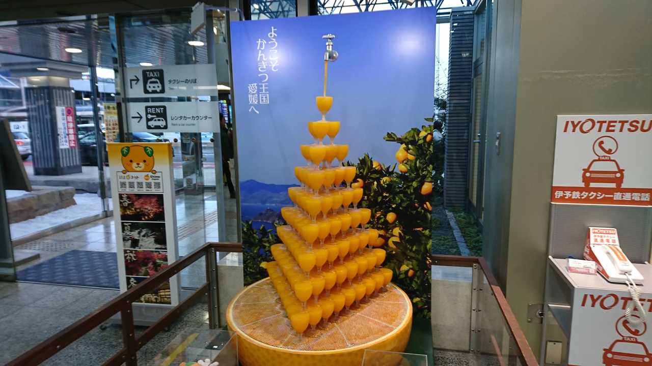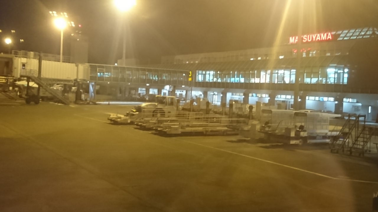松山空港は地方空港の一つではありますが、東京、大阪方面を中心に多数の便が発着。出発前の保安検査場は、JAL、ANAはもちろん、Peach、ジェットスターなど各社共通。夕方17時台は、各社ともに東京、大阪方面のフライトがあり、さらにANAはB777の大型機だったりするので、ひどいときは一時間近くかかるときがあります。さすがに各航空会社の係員が、締め切りの近いフライトのお客さんを誘導しますが、それでも限りがあるので、夕方のフライトは30分程度遅れることも。以前よりは検査場も増設されているらしいのですが、効果が上がっているとは言い難い。これではお土産を買うヨユウスラナイ。改善要だと思う。