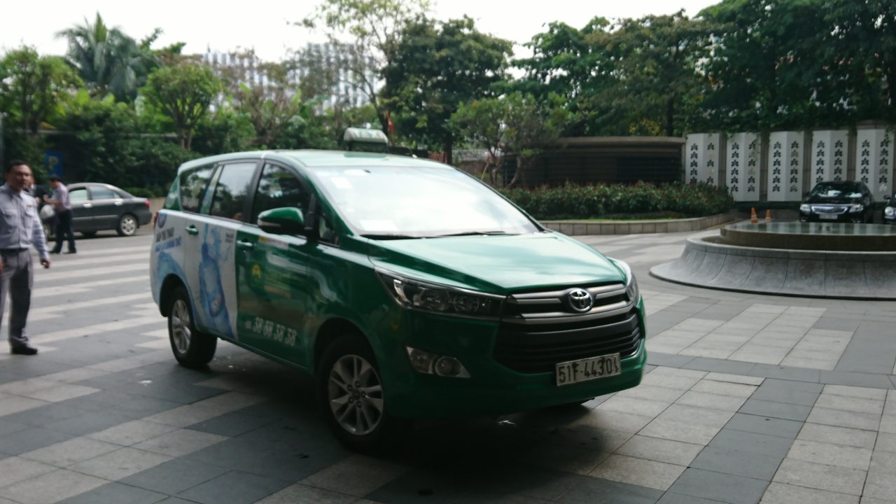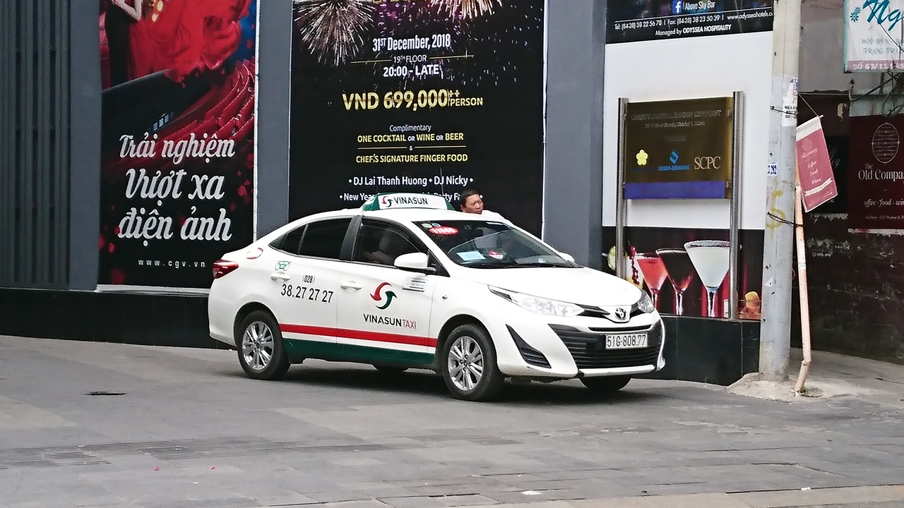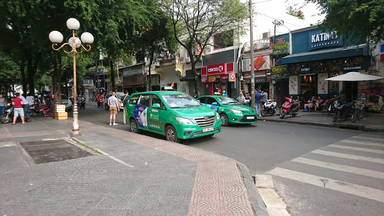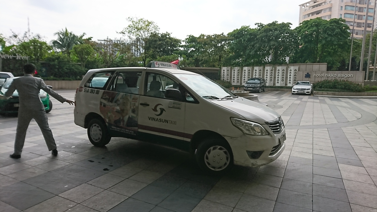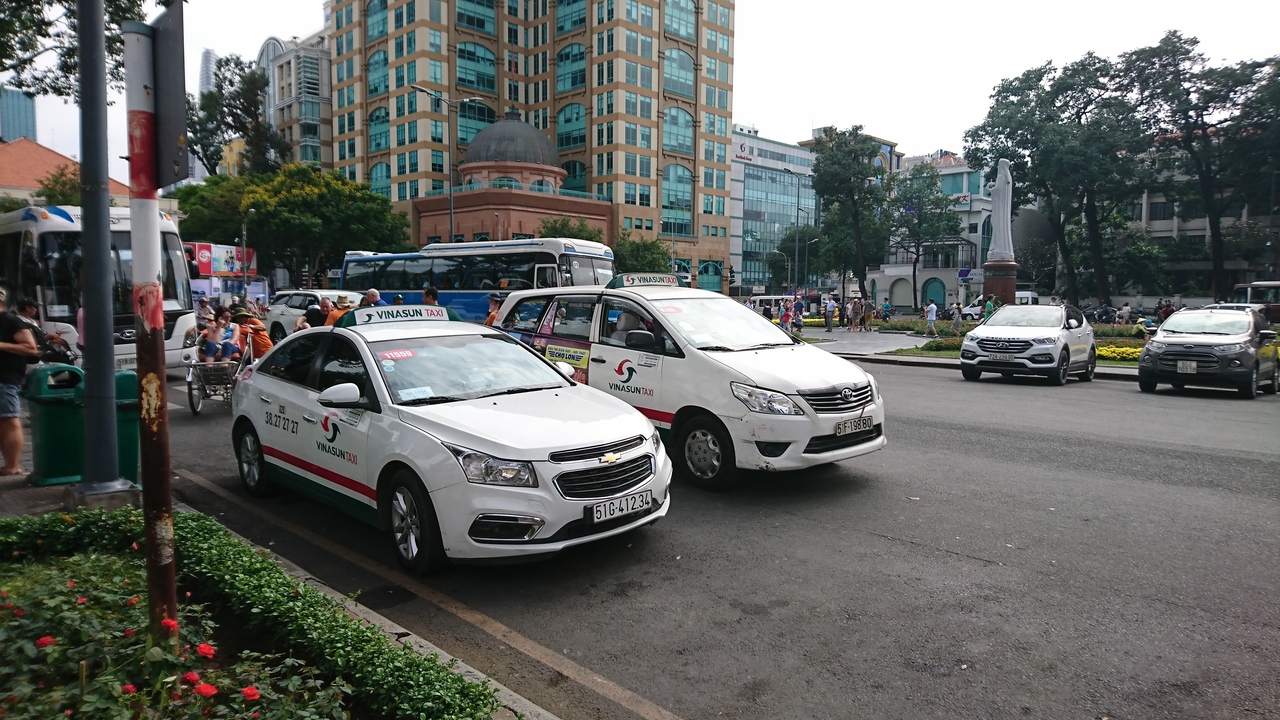 ホーチミンのタクシーは、悪質なぼったくりドライバーが多いのが実態。そういった中で比較的安心とされるタクシーは、ビナサンかマイリン。ビナサンは白い車体に赤と緑のラインが目印ですが、悪質なタクシーも似たカラーを模していることもあるので、行灯または車体に「38.27 27 27」と書いてあればビナサングループの車両です。高級ホテルの場合、ビナサンのほうが人気があるようです、マイリンは濃い緑の車体が特徴で比較的見つけやすい。行灯かもしくは車体に「38.38 38 38」と書いてあてばマイリンです。ビナサン、マイリンだからと言って必ずしも安心なわけではありませんが、他よりは安心というレベルです。また、車にはカーナビがついていますが、運転手はそう道を知っているわけではないので、高級ホテルは良いものの、レストランなどの住所を言ってもちゃんと連れて行ってもらえないこともあります。車両の大きさで初乗りが異なります。