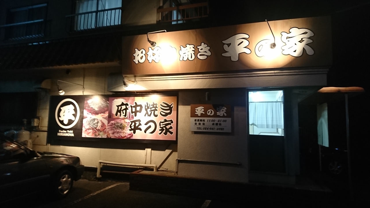 府中にある有名店「平の家」を引き継ぐお店。府中焼きとは広島のお好み焼きと異なり、豚肉バラではなく、ミンチか細きれのお肉を使うので、麺の表面がパリパリしているところが特徴。こちらはミンチ肉を使用。お店は、東福山駅から徒歩10分くらいのところにある。テーブル席とカウンター席、2階に座敷あり。メニューは、関西風お好み焼きと府中焼きとあり(この他、ホルモン炒め、エビマヨ、牛スジぽん、焼き飯がある)ますが、ここはもちろん府中焼き。肉玉とスペシャルがあり、スペシャルはイカとエビが入る。大きさは普通、セミダブル、ダブルとあり、100円ずつ異なる。ここの特徴は、お好み焼きには溶き卵がかかってあり、とろーりとしていて美味。このお掛けでパリパリとふんわりが同時に楽しめます。これはオリジナル。マヨネーズは別売り。また行きたいお店の一つ。