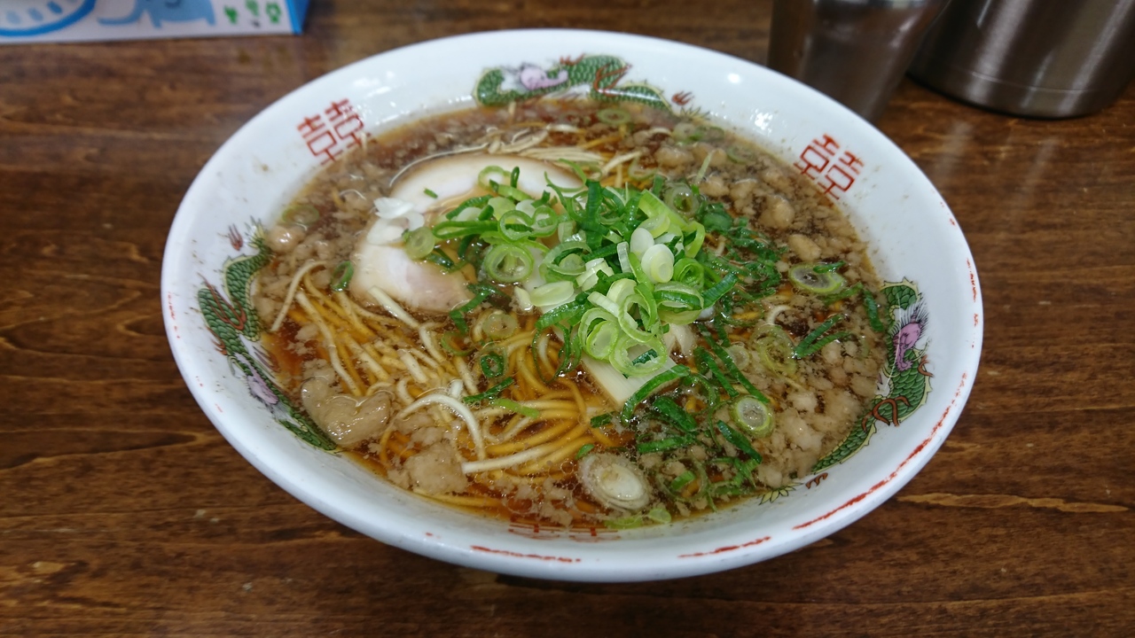 福山駅からすぐのところにあるお店。カウンターのみのお店ですが、夜20時を過ぎても結構混雑。尾道ラーメンは600円でリーズナブル。背油と濃いめの醤油のコラボレーションは、見た目よりあっさりしていて、平打ち麺との愛称も抜群。背油は口のなかで溶けるタイプなので、油っぽくないところが良く、醤油の味を殺していない。具は至ってシンプル。チャーシューとシナチク、ネギのみ。尾道ラーメンの王道を行く味だと思います。
