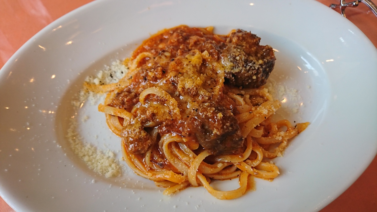 JR飯田橋駅西口からすぐ。サクラテラスの2階にあるイタリアン。夜はローストビーフがメインのようですが、ランチもグー!ビジネスランチでも使えます。ランチメニューは、パスタ(1100円~)、メインディッシュ(1800円~)、ランチコース(2600円)、フィレステーキ(5500円)とありますが、お得なのはランチコース。パスタ、メイン、ドリンクは選択でき、ホップオーバー(パンのようなもの)、サラダ、デザートつき。ホップオーバーは、シュークリームの皮のような中が空洞のパンで、そのままでも、クリームとメープルシロップをつけても美味。セレクトした和牛のミートソースはお肉の味がしっかりしておりこれまた美味。メインは白身魚にしましたが、丁寧に作られている印象。料理のレベルはかなり高いかと。量もちょうどよく、料理の出てくるタイミングもバッチリでした。12時頃はかなり混雑。開店直後の11時半頃がオススメです。