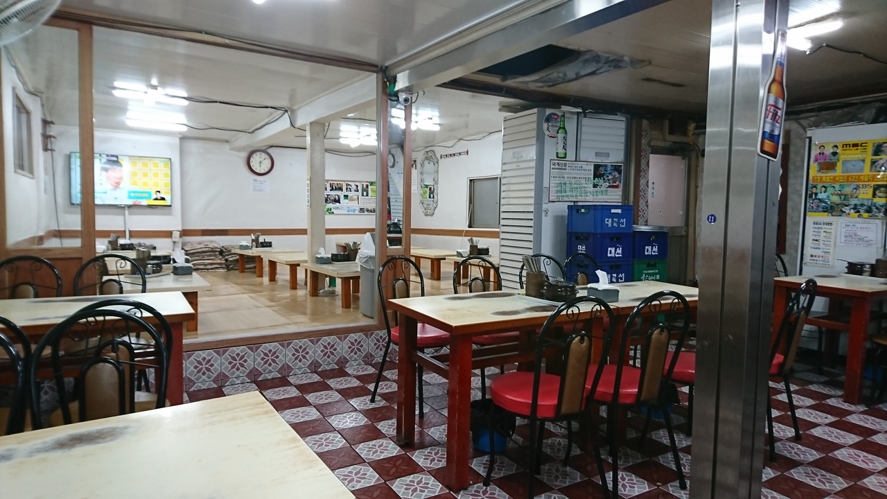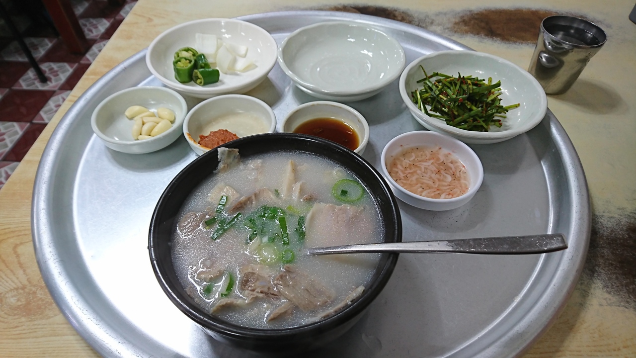 釜山名物デジクッパのお店。西面のデジクッパ通りのなかで一番の有名店。お店の前でグツグツと煮込んでいて、頼むとそのお釜からよそってくれます。ベースはかなりの薄味で、しらすの塩からで自分好みの味に整えていくのが基本。お肉がこれでもかというくらい入っており、脂がスッキリ落ちており柔らかい。そのまま食べてもよし、ポン酢(のようなタレ)につけても美味。キムチは食べ放題で、日本のものよりもよく漬かっている印象。24時間営業なので飲んだ後にも朝食にもピッタシ。