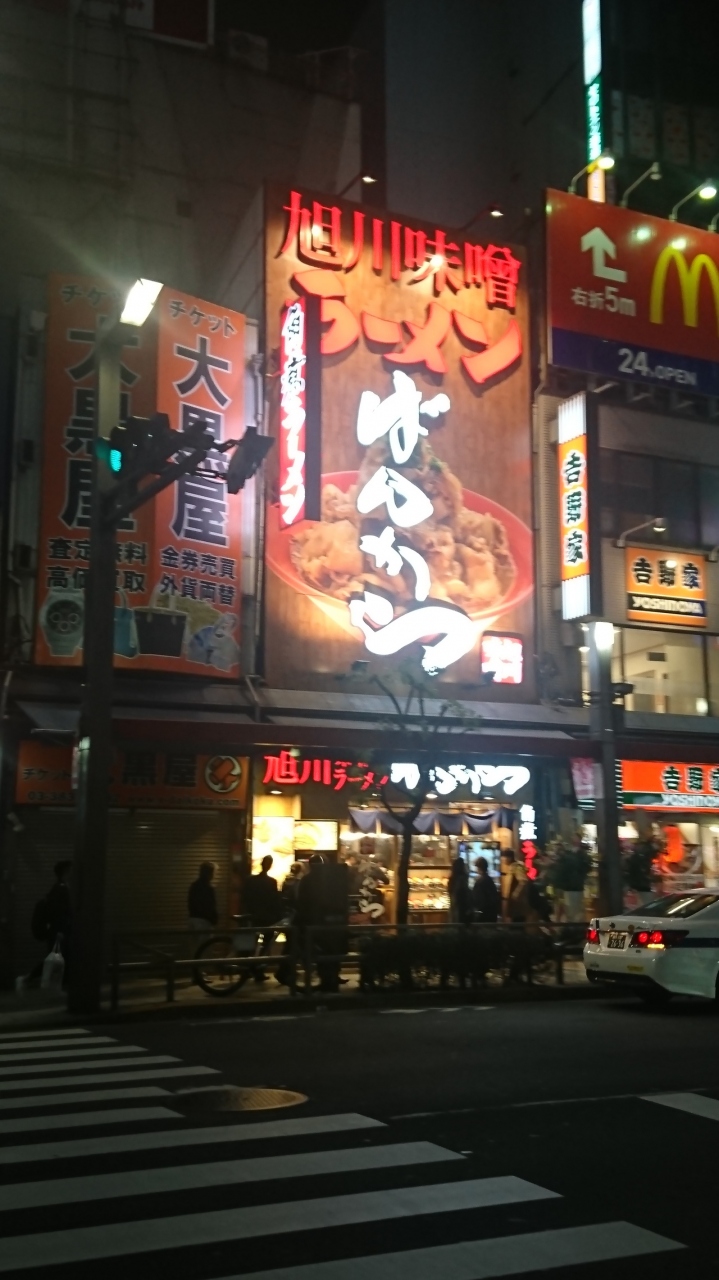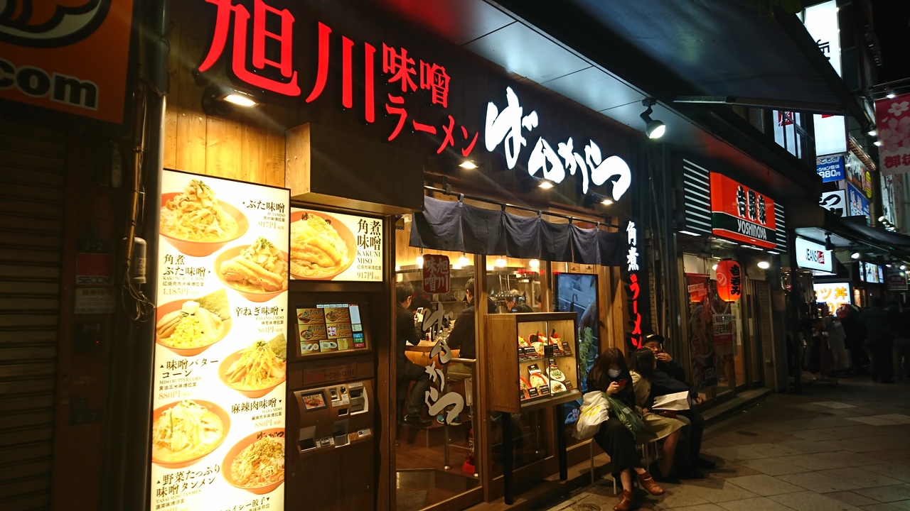 JR御徒町駅前にある「ばんから」を経営する花研という会社が経営するチェーン店。2018年3月に改装されて「旭川味噌ラーメン ばんから」(お店の看板には「角煮ラーメン」ともある)に変わりました。ただし、お店のWebサイトでは以前のお店の名前のままです。「旭川ラーメン」というと魚介と鶏ガラ、豚骨、野菜でとったWスープですが、こちらは野菜を練り込んだ味噌ラーメンで旭川ラーメンと名乗ってよいのかはなんとも言えず。しかし、スープはぎとぎととしておらず、野菜の甘味と味噌のコクで美味。せいべえと異なることは、お店の別の看板にもある通り「角煮」。ばんからラーメンの角煮が味噌ラーメンでも食べられます。角煮はよく煮込まれていて、柔らかく、しっかりとした味で、味噌ラーメンにも合います。ご飯が無料でつくのも嬉しい。
