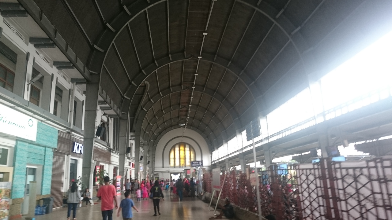 ジャカルタ市中心部に位置するKRLジャボタベックの中心駅。1870年開業当時はジャワ島各地を結ぶ長距離列車のターミナルで、昔の上野駅のような駅だったようです。しかし、1990年代後半からガンヒル駅とパサール・スネン駅にその機能が移され、通勤電車メインの現在の形になりました。駅の構造は開業当時のものが維持されているので、オランダ人の設計者による西洋風とインドネシア風の折衷の独特の建物は変わっていません。Kota駅に乗り入れているKRLジャボタベックの車両は、日本のODAを利用して継続的に譲渡されているもので、東京メトロ東西線や千代田線、JR東日本南武線や横浜線、常磐線各駅停車、廃車が進んでいますが東急田園都市線で走っていた車両などが、日本で走っていた時と同じように、元気に走っています。ホームに入ると、日本の懐かしい車両が出迎えてくれて、「まだまだ現役で頑張っているよ」と語りかけているかのようにもみえます。