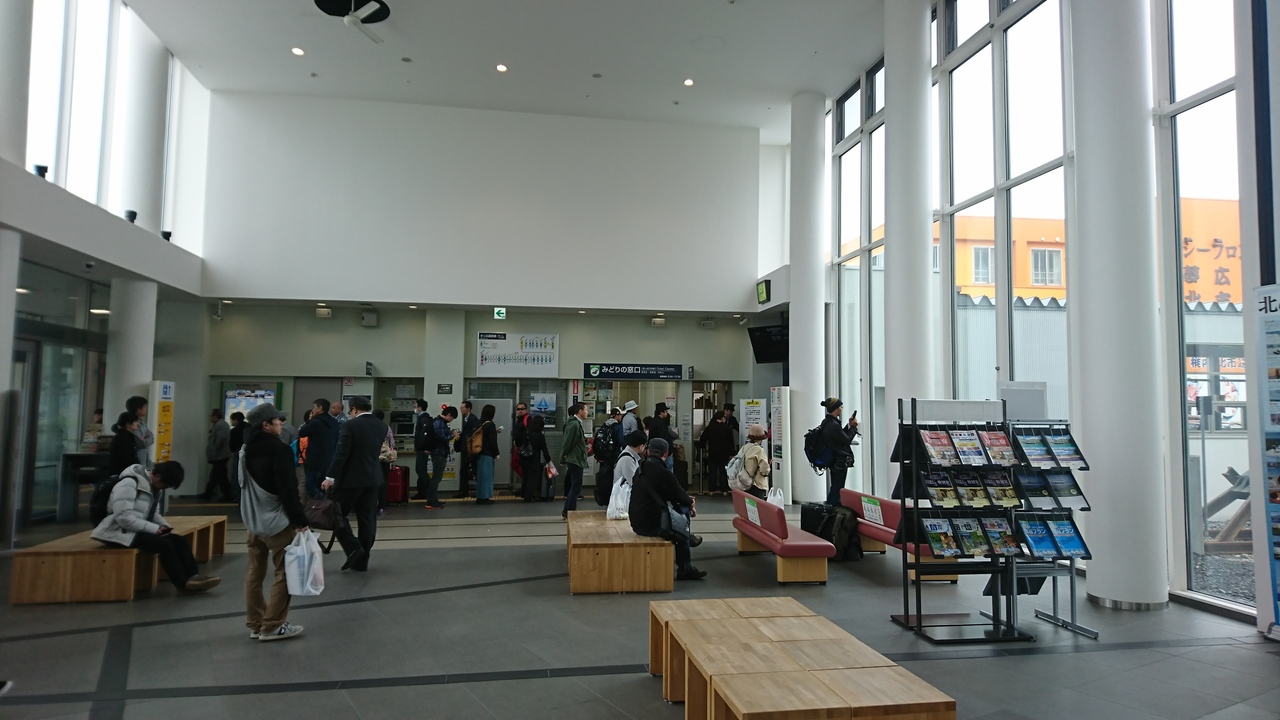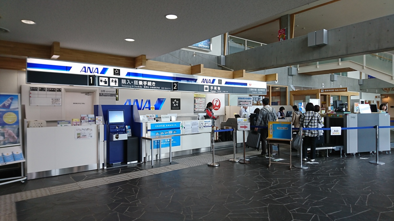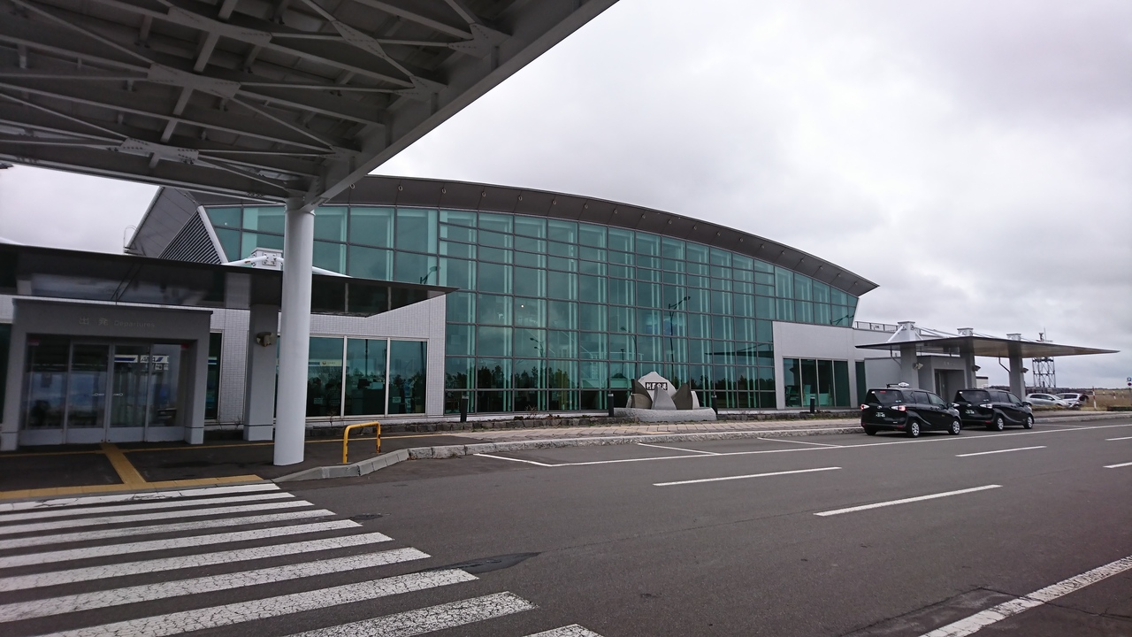 利尻島の空港。ジェット機も離着陸可能な1800メートルの滑走路があり、ANAが6月から9月までの季節運航で新千歳空港行きをB737-500(126席)を運航しているが、通常はHACがJAL便として丘珠空港行きをSAAB340B(36席)で1日1~2便運航している。空港構内は喫茶店兼お土産店が2階にある(通常は14時~15時半のみ営業)のみで、制限区域内には飲み物の自動販売機のみ設置(Wi-Fiは完備)。島内を走る宗谷バスが空港に乗り入れるものの、JAL便は接続せず(かろうじて14時15分鴛泊発のバスが14時35分に空港に着くので15時35分発丘珠行きJAL便への接続は可能)、基本は自家用車かタクシー利用。ANA便運航時のみ鴛泊、沓形へのバスの臨時便が運航されます。以前使ったことのあるコウノトリ但馬空港と類似点が多い気がしました。