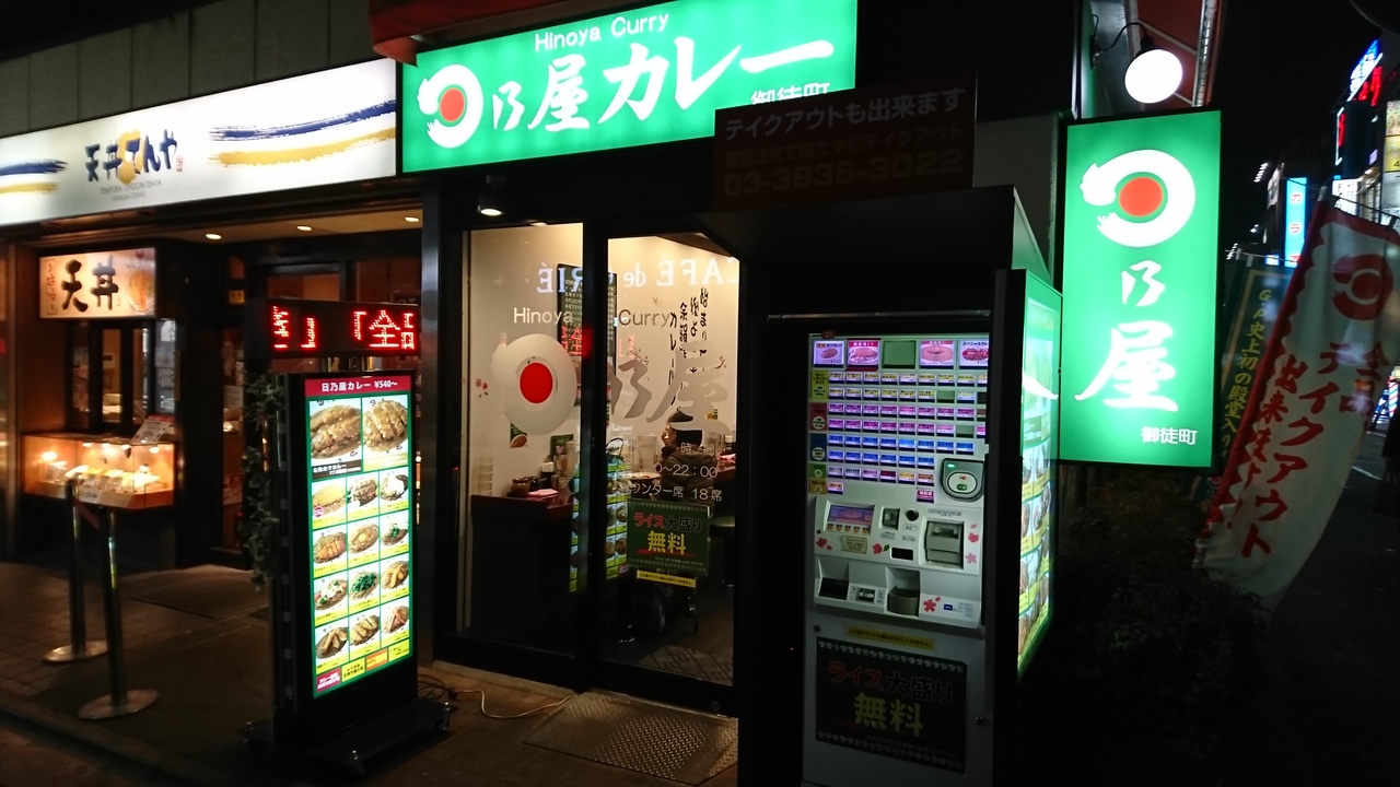 神田カレーグランプリで、初の殿堂入りを果たした「日乃屋カレー」の御徒町店。Webサイトに「神田店を継承した味」とある通り、本店のカレーをスパイシーにさせた味で、甘さの後に辛味が追いかけるタイプ。ルーはかなりどろっとしており、ついつい食べてしまう、癖になるタイプのカレーかも。ご飯大盛りが無料なのも嬉しい。御徒町駅の改札口を出てすぐのJRのガード下にある細長いお店で、カウンターのみ。奥に厨房があり、カツはその場で揚げているのでサクサクです。毎月11日はチーズ1,5倍、22日は名物カツカレーが680円(通常840円)になります。