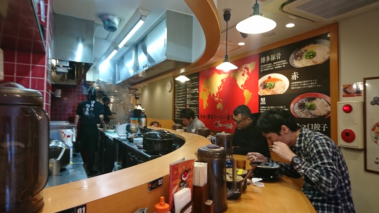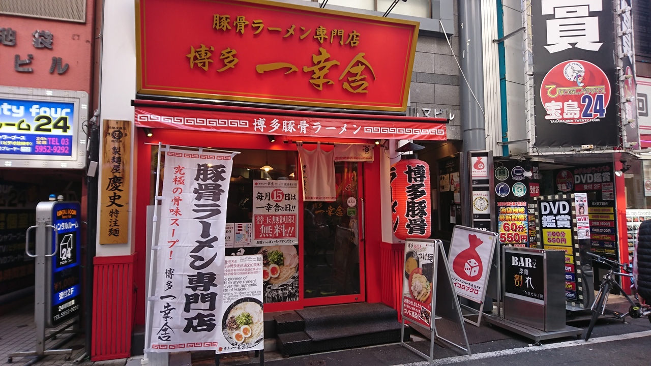 池袋駅東口から徒歩数分。路地にラーメン屋さんなど飲食店の集まる辺りにあります。細長いお店で、カウンター席の奥にテーブル席があり、入口には食券機があります。博多豚骨、赤、黒とある中で、一番ノーマルな博多豚骨をオーダー。黒い器でお皿付きはすこし大袈裟ですが、味はノーマルな豚骨ラーメンという印象。スープはカなり煮込んである感じで、豚骨の匂いが結構します。泡がスープをおおう感じになるのでなかなか冷めません。しかし、見た目ほどくどくない。麺は一般的な細麺で小麦の香りがするタイプ。具も、薄切りの豚肉、キクラゲ、ネギとシンプル。無料の白しょうがを入れたところ、味が締まって美味でした。ノーマルな豚骨ラーメンを食べたいときオススメ。