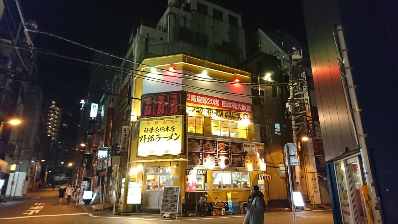 最近、お店を増やしている野郎ラーメンの秋葉原店。お店の看板は「秋葉原総本店」とありますが、ホームページでは「秋葉原店」。少し立て付けの悪い扉を開けると、ニンニクの強烈な臭い。蓋のないカップに刻みにんにくがたくさん入っており、にんにくが苦手の方は、これだけでノックアウト。野郎ラーメンは、野菜(もやし)の量が多いためか、思っていたようなコテコテではない気がしました(とはいえ、結構ドロッとしたスープですが)。もやしはシャキシャキで、スープと合います。麺は少し固めに茹でられており、麺と絡まっているので、最初は箸が重たいです。スープの濃厚さにはこれくらいの固さがいいのかなぁと思います。JAFカードで味玉が無料になります。二郎系とは違った濃厚なラーメンかな。