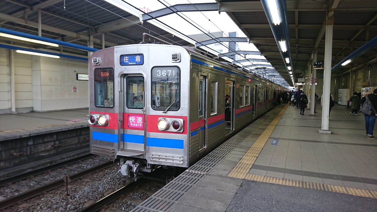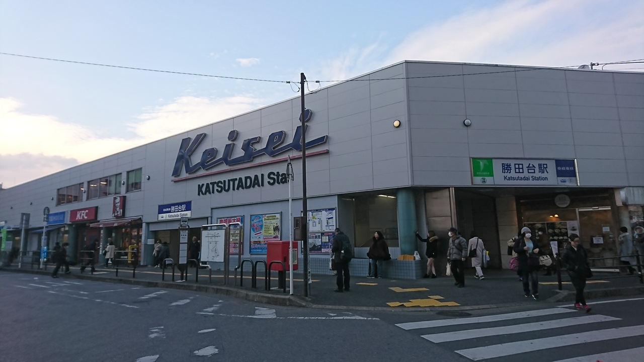 八千代市東部に位置する京成本線の駅で、特急や快速特急、通勤特急の停車駅であり、東葉高速線との乗換駅です。乗降客は6万人近くで、駅舎には大きく「keisei」と書かれているなど堂々としています。改札口は地下と上野方面へのホームに直進できるものがあり、地下では東葉高速線の改札口が目の前にあります。駅を出ると、京成グループのスーパーと遊戯店がどーんと構えており、赤い東洋バスと青い京成バスが目立ちます。東葉高速線から成田空港へのアクセス機能も果たしており、スーツケースを持った方もよく見かけます。