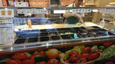 東京イースト21の1Fのふれあい広場前にあるお店。テイクアウトも目の前の広場の休憩所で食べるのもOKです。サブウェイは野菜不足だなと感じるときにうれしいお店。今回はおススメNo.1の「エビアボガド」を選択。パン(ブレッド)を、ウィート、ホワイト、セサミ、ハニーオーツから選択できるのはほかのお店と同じ。料金が変わらないのもうれしい。野菜はピクルス多めと頼んだら、もちろんOK。こういうサービスもうれしいですね。エビはプリプリで、アボガドはクリーミー、野菜のシャキシャキさを引き立ててくれます。レギュラーサイズでランチなら十分のボリュームです。また、お店にはそれぞれの商品のカロリーの記載があるのもうれしいですね。