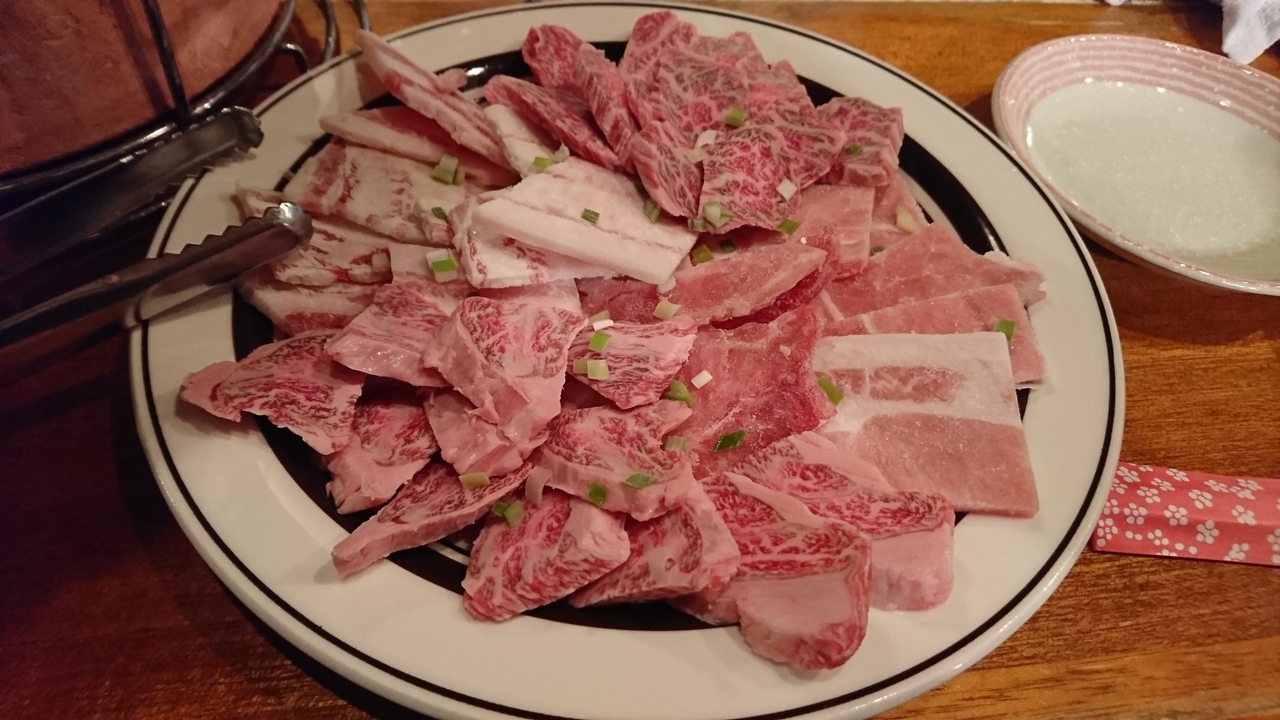 ユーグレナモール近くにあるお店。石垣島出身(東京での勤務経験があるそうです)の店主さんがやっているお店で、空いているときは話を聞くのも楽しい。ネットで「1人」「石垣牛」で検索したところヒットしたお店。カウンター席とテーブル席があり、カウンター席にもダクトがあるので、備長炭の七輪で1人焼肉も楽しめるわけです。メニューは石垣牛やアグー豚の焼肉のほか海鮮やホルモンなどメニューも豊富。今回は、石垣牛とあぐー豚のセット2980円と石垣牛のにぎり980円を注文。冷凍物で少し小さめのお肉(細切れ?)ではありますが、上ロース、上かルビ、あぐー豚のバラとロースが、結構な量入っていてお得。石垣牛の握りはお肉が少し炙ってあり、お肉の味がしっかりわかるお寿司。リーズナブルで1人でもオーケーなのは、1人旅にはなりよりもありがたい。