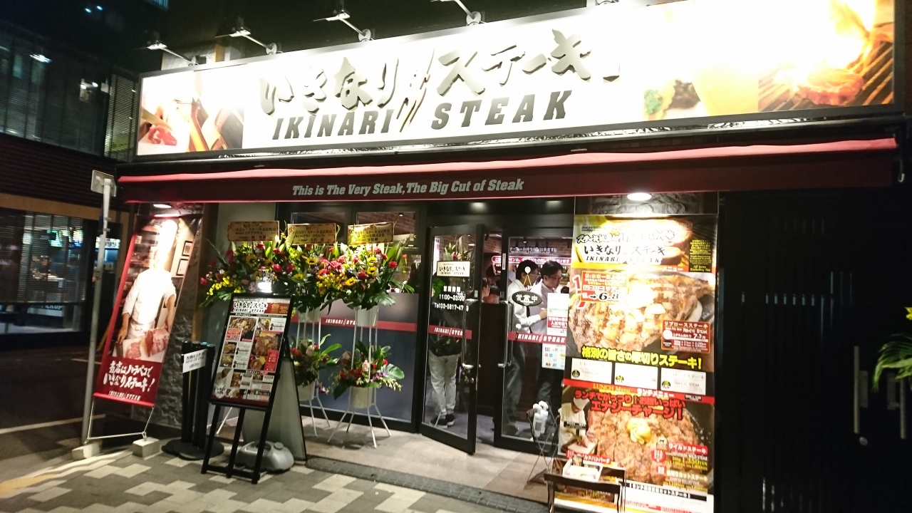 昨年9月12日に開店したお店。秋葉原から徒歩10分弱。中央通り沿いにあり、以前は牛カツのお店の居抜きのお店。立ち席、座席もあるお店で、座席の方が多い。メニューは他のいきなりステーキと変わらず。ステーキの持ち帰り(テイクアウト)も可能。意外と女性のお客さんも多い印象。