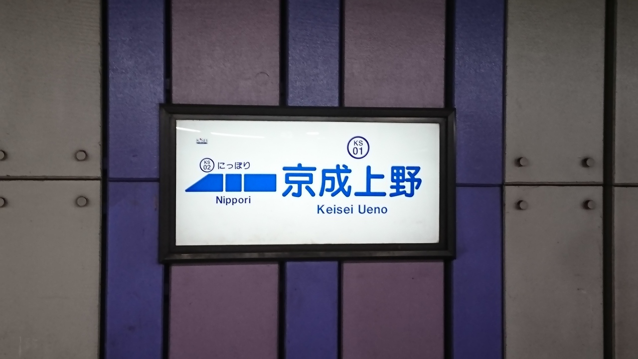 成田空港に向かう京成スカイライナーをはじめ、京成本線へ向かう列車の始発駅であり、京成電鉄の始発駅。開業当時の名称は「上野公園駅」で、現在も上野公園の真下にあります。このため、JRや地下鉄上野駅とはやや距離があり(といっても、300メートルくらい)、地下道でも結ばれてはいるものの、JRからの多く乗換客は、乗換のしやすいお隣の日暮里駅を利用するので、上野~日暮里間のスカイライナーのお客さんはかなり少ない。乗降客も日暮里駅の半分程度とのこと。駅構内もファミリーマートがある程度で、ひっそりとしており、大手私鉄の都心のターミナル駅としてはかなり寂しい。