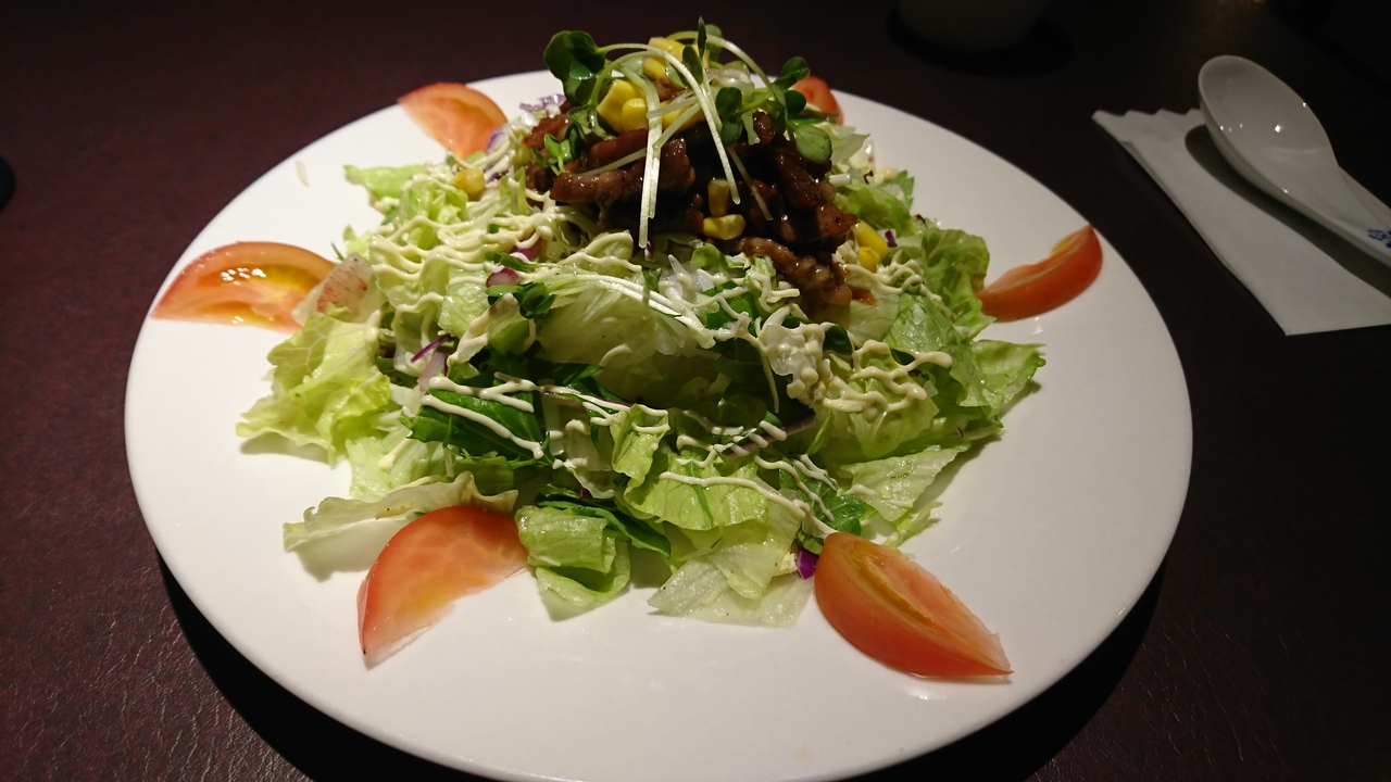 主張し合うお肉とサラダがご飯の上で調和したシシリアンライスのお店