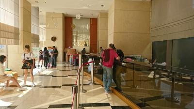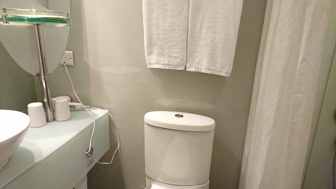 香港空港に到着が23時を過ぎる便であったので、空港に近いホテルという希望で宿泊。しかも、香港では破格の安さ(1泊6000円代)にも惹かれました。ホテルに着くと、思ったよりもロビーは立派。しかし、「安い」ということは、それなりのレベルということかも。部屋は机もなく、ベッドがギリギリでおかれていて、壁はコンクリートに色をつけたような感じ。しかも汚れが目立つ。シャワールームはあるものの、トイレに隣接し過ぎていて、トイレがびしょびしょになること間違いなし。テレビはNHKも昔は映ったようですが、見ることは出来ず(韓国の国際放送は映りましたが)。しかも、この時代にブラウン管テレビ。港湾の荷物の積み降ろしを深夜もやっているので音も少々。ロールカーテンか が下まで降りないので、光が漏れます。なんと無くマンションのような感じ。空港までタクシーで222ドル、青衣駅まで40ドルくらい。スーツケースは運べませんが、青衣駅やディズニーランドまではシャトルバスあり。ミニバスもありますが、旅なれない人には難しい。市内もかなりはなれているので、ディズニーランドとトランジット向けかも。