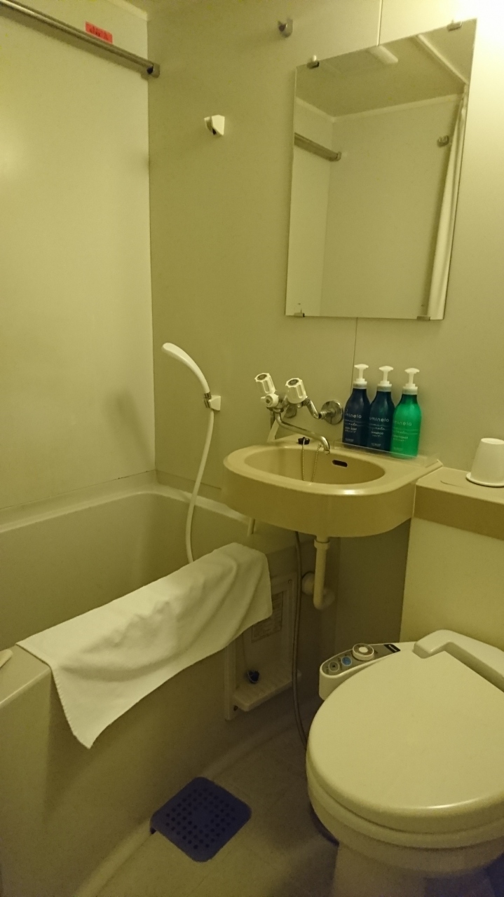 那覇の繁華街、松山にあるホテル。ビジネスホテルなので、部屋は狭いものの、最低限の設備が整っています。古いホテルなので、バスルームの扉が高い位置にあったりと、バリアフリーにはやや難あり。夜も眠らない場所にありますが、部屋は意外と静かでしたが、客引きの方がいっぱいいるところなので、夜遅くの到着はタクシー利用がよいかも。空港までタクシーで10分もかからない場所なので早朝便の対応も可能。沖縄のエネルギー企業のりゅうせきが経営しているとのことです。