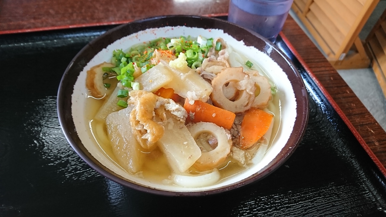 ことでん琴平線太田駅前にあるお店。もともとは地元中心のお店のようでしたが、最近では観光客も結構多いようです。完全セルフのお店で、うどん小が200円。大、特大は100円ずつアップ。しっぽくうどんは、ちくわ、大根、人参、お肉などが多数入っていた甘めのお出汁。うどんの腰はちょうどよい。自家製の一味唐辛子は激辛なので少量かよいです。