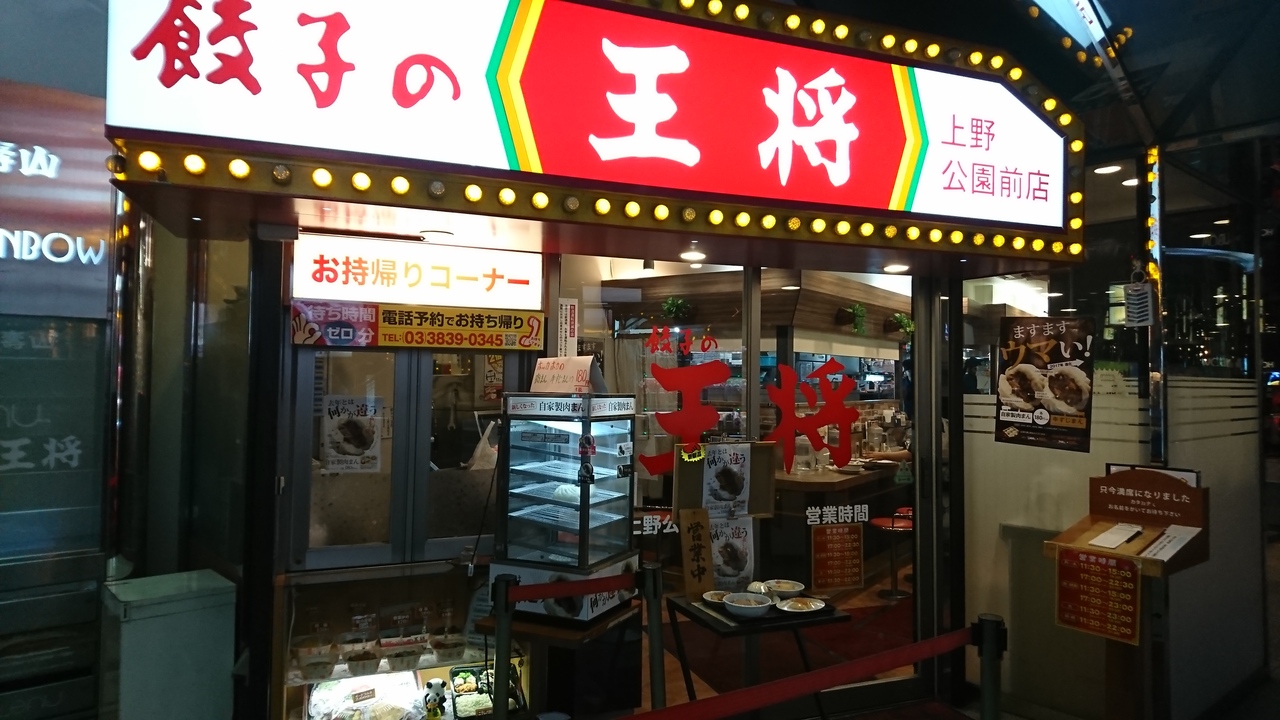 上野公園の横にある餃子の王将。看板が大きいので遠くからでもわかりますが、入口が奥にあって入りにくい。入口にはコンビニにあるような中華まんの保温器が置いてあって、持ち帰りもできます。基本的に他の王将のメニューと同じで、味は安定しています。ただこちらのお店は、餃子のタレのお皿が小さい気がしました。まだ食べたことはありませんが、上野らしく「パンダラーメン」があり、いつか食べてみたいなと。クレジットカードや電子マネーが使用できない旨の注意書きにパンダの絵が書いてあるなど、上野らしいお店です。