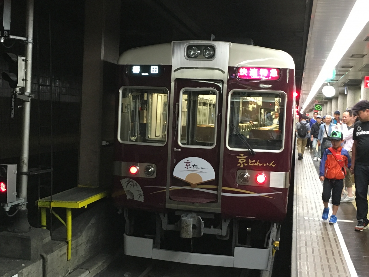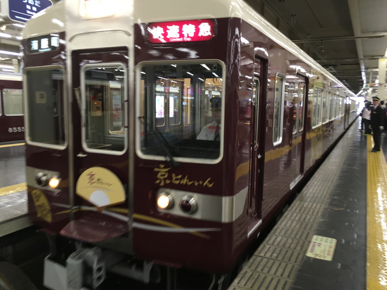 特急料金や座席料金不要、予約不要、普通運賃だけで乗車できる阪急京都線を走る観光特急。大阪市内の淡路駅から京都市内の桂駅までノンストップの快速特急として土日祝日の4往復、大阪・梅田から京都・河原町を結んでいます。6両編成で、2両ずつコンセプトが異なり、乗った瞬間から京情緒を味わうことができます。特に中間の3号車、4号車はエントランスに格子状の飾りが設けられ京町家のよう。座席には畳の一部が使用されているなど、落ち着いた雰囲気。日本語に加え、英語、韓国語、中国語の4カ国語での案内や、嵐山の観光ガイド放送を行うなど、インバウンド対応もしっかりしており、是非外国人観光客の方にもおススメしたい豪華な特急電車です。