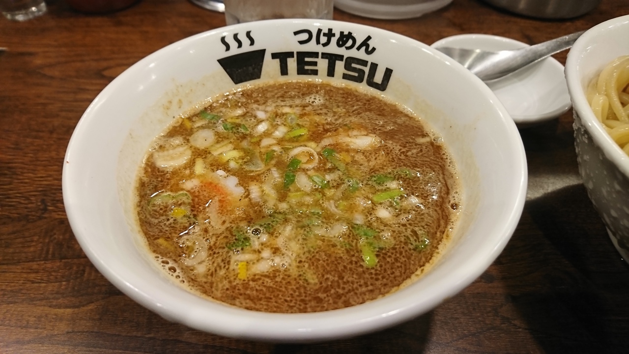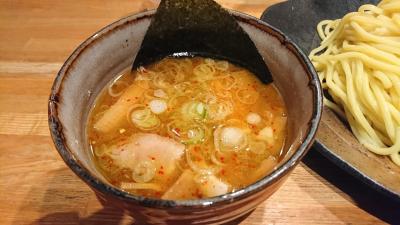 御徒町駅近く。山手線のガード下のラーメン屋さんが多数あるうちの一つ。夜遅くまで行列が絶えない「中本」の隣、というとわかりやすい。厨房に沿ってL字型のカウンター席と奥にテーブル席。お店のなかには柱があるのですが、厨房とカウンターでうまく使っているという印象。つけ麺は、並盛、大盛り、特盛も同料金。特盛は400グラムあるので茹でると結構な量。スープは強火で炊き出した豚骨と鶏ガラスープに煮干し、鯖節、鰹節が入っており、魚の出汁が強めに感じます。途中で揚げネギを入れると味変して最後まで美味しく食べられます。麺はうどん粉とパン粉をブレンドしたとのことで、小麦の臭いがあります。アンケートに答えるとサービス券がもらえて、次回、味玉か麺の大盛りになります。