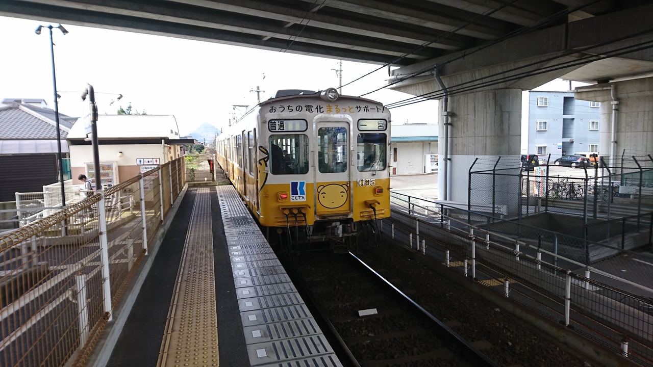 ことでん志度線の瓦町の次の駅。高松市内の中心部からそう離れていないので、地方ローカル線の駅と言うイメージではなく、下町の駅のような感じ。しかし、駅前にはコンビニも含めて店舗は見かけられず、駅を降りるとことでんの労働組合の建物が目につく程度。近くには四電工の本社などもあるそうです。この駅の特徴は、駅に隣接した今橋工場。見た感じは工場というよりは車庫ですか、志度線は、琴平線とつながっていない(分離された)ので、仏生山で行う大きな検査以外は基本的に、今橋工場で行うとのこと。鉄ちゃんにも楽しい駅です。