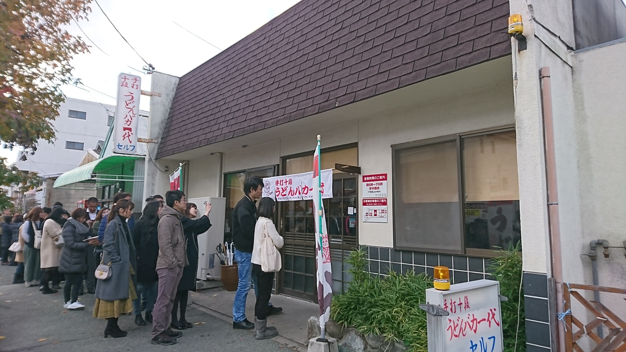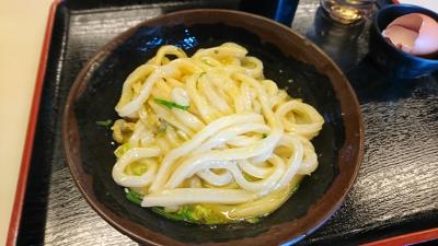 琴電志度線花園駅から徒歩5分。日曜日の11時頃にはかなりの行列で、どんどん長くなる。駐車場には、県外のナンバーが多い。人気は「釜バターうとん」と「梅うどん」。今回は「釜バターうとん」に。小サイズで490円は少し高め?うどんの腰は普通。たまごと胡椒出汁の味が絡まり、天かすがアクセント。和風カルボナーラ。