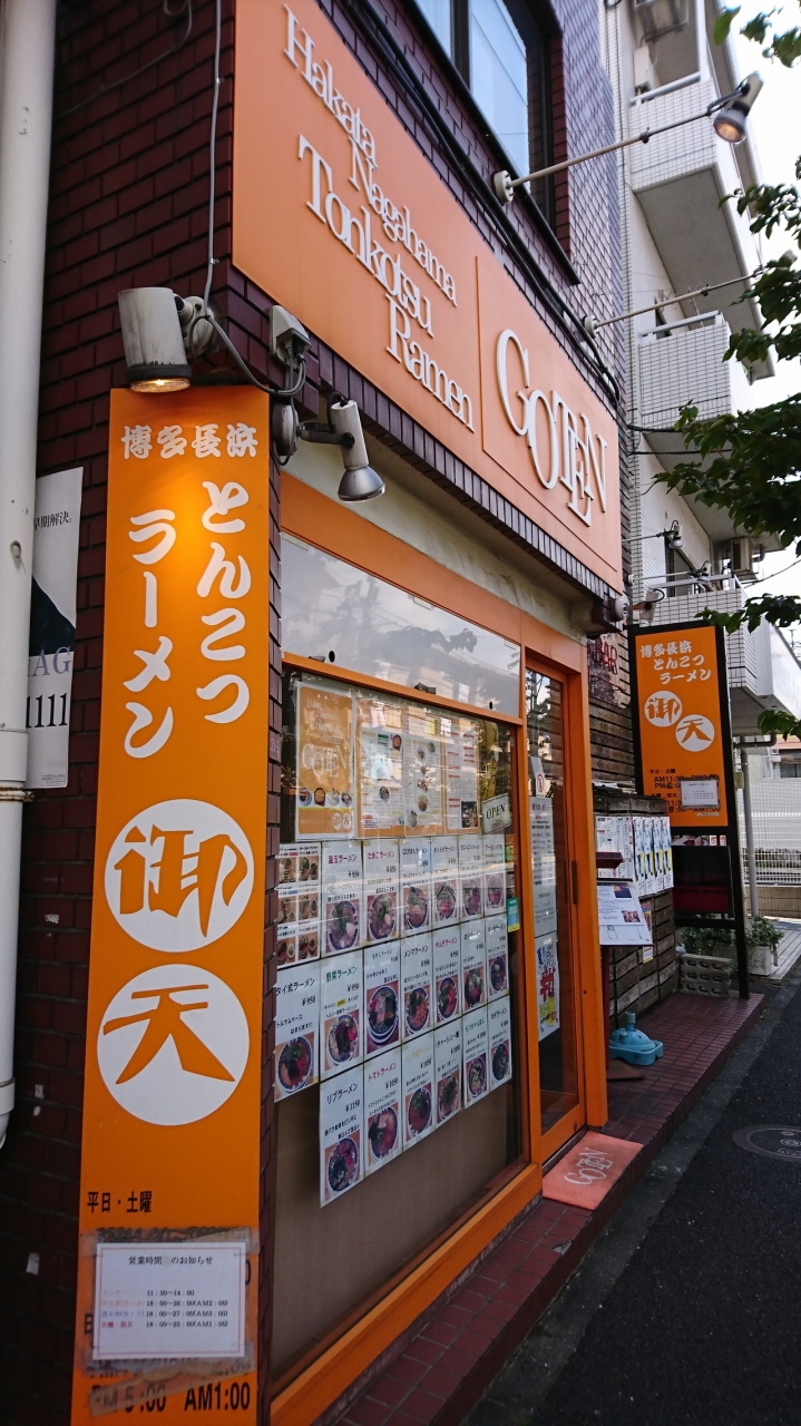 新青梅街道沿い。西武新宿線下井草駅から徒歩10分くらい。旧早稲田通りの交差点からすぐ。ラーメン店っぽくないオレンジ色のお店の前を通るだけで、豚骨の臭いがします。この臭いが苦手な場合は厳しいかも。メニューはラーメンの他、カレー、ハンバーグ、焼き鳥など居酒屋メニューもあり、お店のなかには一升瓶が置かれており、昼間から飲んでいるお客さんもいました。ラーメン店というよりはラーメン居酒屋という感じ。しかし、ラーメンはかなり本格的。豚骨の独特の臭いがプンプンする、最近は博多でも見つけることが難しい本格的な豚骨ラーメンという印象。しかし、臭いほど味はくどくなく、あっさり。さらっと食べられます。麺は硬め辺りがスープと合う気がします。テイクアウトも可能できる高菜も美味。水餃子も食べましたが、ポン酢醤油と大根おろしで食べるもので、ごはんが進みます。
