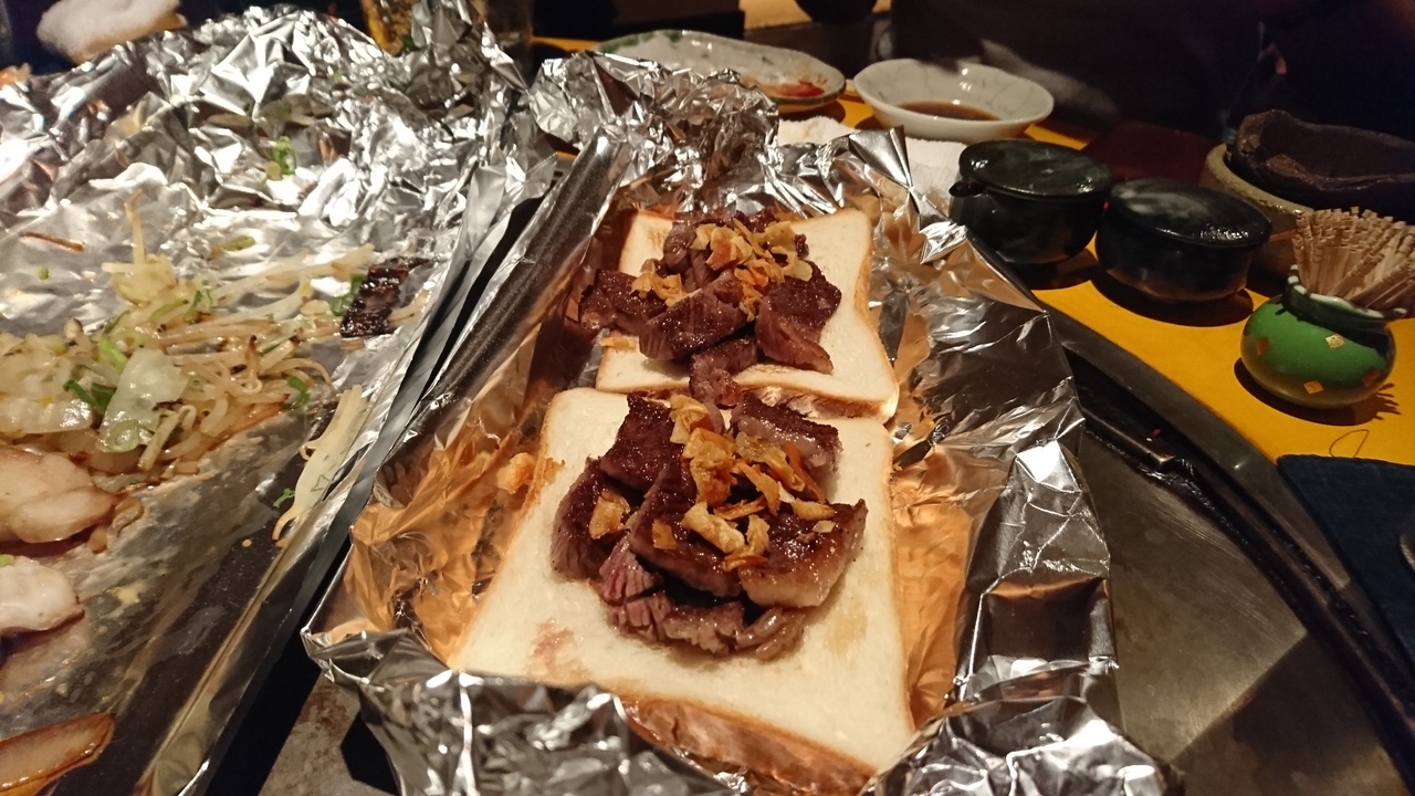 JR東西線新福島駅から徒歩3分。旨いお店の激戦区、福島の路地にあるお店。背の低い入り口を入ると、鉄板のあるテーブルが広がり、2階にも円形の鉄板のあるテーブルが、2席。2階での食事でしたが、結局、鉄板には火が入りませんでしたが、鉄板焼きは十分すぎるほど堪能できます。ファーストオーダーは、お店のオススメてもある焼き枝豆。堀江貴文氏も絶賛したというこの「枝豆のオイル焼き」は、ガーリックオイルでこんがりと焼かれていて、匂いまでがごちそう。お豆だけでなく、皮もしがしがして旨味を堪能できます。これまでに味わったことのない枝豆。最初からびっくりな美味。ステーキは、鉄板で焼いた後、トーストの上に乗ってやってきました。お肉の味はもちろん保証付きですが、トーストは回収され再びガーリックオイルでプレスされて提供されます。肉汁を吸ったガーリックトーストは普通のガーリックトーストにはない贅沢さ。粉もんも、さすが大阪のお店。手を抜いていない。銀座ならかなりの額になるだろうと思いましたが、さすが大阪の福島。リーズナブルでした。帰りには、お店の名刺をもらって感謝されます。絶対リピーターになると決めたお店です。
