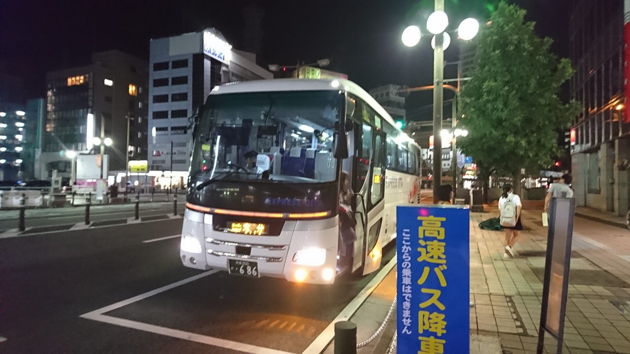 福岡(天神)から大分までの「とよのくに号」で、大分バス担当便でした。車内には充電用のコンセントがあり便利。帰りのバスは亀の井バスでしたが、コンセントではなくてUSBで、ないよりはよいですがやはりコンセントのほうが便利ですね。4列シートでしたが、そう気になりませんでした。運転手さんの案内も爽やかで、は乗客に気を配りながら安全運転を心がけている感じが伝わってきました。