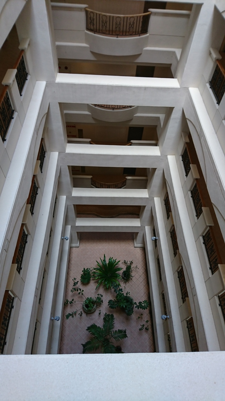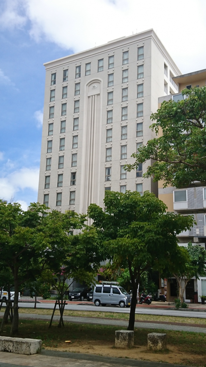 ゆいレールおもろまち駅前にあるホテル。改札口からDFS側に歩くとすぐわかります。那覇メインブレイスからも徒歩すぐで買い物にも便利。結婚式場のようにも見えるおしゃれな外観なホテルで、1階のロビーは、外から見るよりも広く感じられ、中央部が吹き抜けになっているので、解放感があります。この吹き抜けに沿って周りをそれぞれの部屋が囲んでいます。部屋は、水回りのバリアフリーの点などを考えるとある程度の経年は経っているようですが、あまりそれを感じさせませんでした。ただ、カードキーを差し込まないとエアコンか動かないので、暑い日に部屋に入っても数分はかなり暑いです。部屋に入れる時間はかなり厳格なようで、11時過ぎにチェックインしたものの、冷たく機械的に15時ですと言われてしまいました。外国人観光客の方の宿泊も多いようですが、英語の対応もイマイチのように見えました。JALのパイロットや客室乗務員の方が宿泊されるホテルのようです。