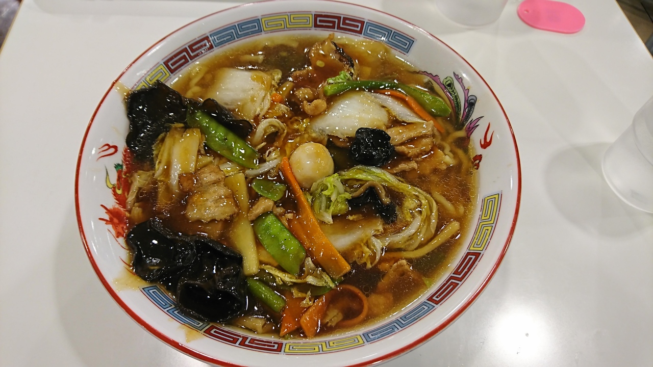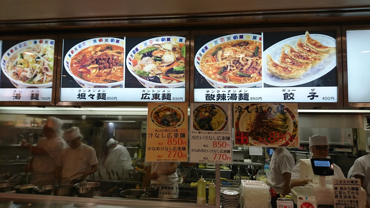 光が丘IMAの地下1階にあるラーメン店。江古田で開業し、光が丘に移転したとのこと。「おおもり」ではなく「たいせい」と読みます。席を確保してから注文しに行き、番号が書かれた食券(プラスチックの番号札)をもらい、ラーメンが来るのを待ちます。「四川麺」「担々麺」「広東麺」が有名のようで迷いましたが、今回は広東麺と餃子を注文。ここのお店は、麺のボリュームが普通盛で180グラムあり、通常(140グラム)よりもボリュームがある。このため、少なめのラーメンも用意されています。待つこと数分。自分の番号が呼ばれ、広東麺を取りに。広東麺のスープは、餡掛けを意識しているのか、あっさり系でそのもののインパクトは薄い。たっぷりの餡掛けは白菜がしゃきしゃきしていて、木耳と豚肉がほどよい味になっている。野菜の甘さが出ていて美味。スープとの相性ぴったし。麺は中太で、餡掛けスープによく絡みます。また、餃子は、1日1000食も出ると言う人気商品で大きめ。皮は厚めですが、お肉と野菜のバランスがよくボリュームたつぷり。ショッピングモールの1階の立地なのでやや落ち着かないところはありますが、味とボリュームではなかなかのレベルだと思います。