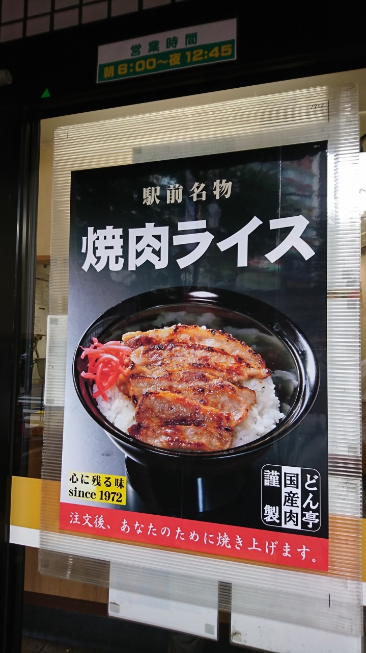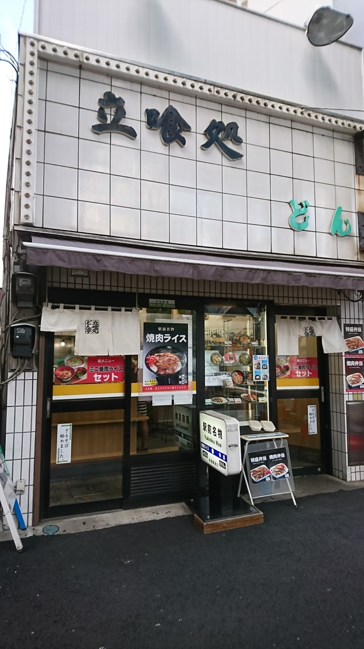 増駅前(南口)にある立ち食い蕎麦屋さん。成増とお隣の下赤塚駅前にあり、こちらは創業1972年だからかなり古い。竹書房文庫の「丼大好き」という本にも載ったとのことです。立ち食いが基本ですが、カウンター席も3席あり。焼肉ライスはボリュームたっぷり。お肉の味付けは少し濃いめの甘さが隠し味のタイプ。お肉は柔らかく、ご飯が進みます。得盛で550円、味噌汁つき。しかし、妥協していない味。池袋0時2分発の準急成増行きの到着を考慮してラストオーダーが0時20分までというのも嬉しい。店員さんも明るく元気が良いです。