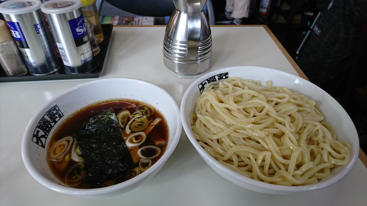 西台駅から徒歩5分くらいの住宅地にひっそりある小さなお店。カウンター席2席、4人座れるテーブル席2つ。マンションの1階にあるお店の入り口の引き戸は、黄色くてラーメン店ぽくないです。大勝軒の代々木上原本店、つけそば発祥の中野店からの暖簾分けのようです。麺の量は、半分盛り150グラム、普通盛り200グラム、中盛り300グラム、大盛350グラム、ジャンボ400グラム。ジャンボが800円で、少しずつ変動。自家製麺は全粒粉とかんすいで作っていて、モチモチ感は少しあり。スープは魚介系で醤油の味が濃いので、麺に酢をかけると庵治が全く変わります。スープは叉焼とねぎが入っていて、まぁまぁのボリューム。大盛もペロッと行けました。炒飯や餃子もあり。Edyやnanaco、Suicaが使えるほか、板橋区内の粗大ゴミ券を売っていたりもします。目の前にコインパーキングあり。