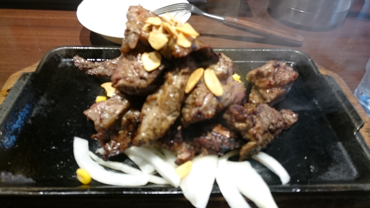 池袋西武百貨店から徒歩3分くらい。池袋に3店舗あるうちの1店。小池都知事が来店して話題にもなったお店。座席のあるカウンター席と立ち席があり、空いていれば選べますが、基本は運任せ。おすすめはは「乱切りステーキ」。200グラムで1100円といきなりステーキのなかではかなりリーズナブル。しかも、ヒレもロースも食べられます。せっかくなので400グラムを注文。見た目もボリュームがあり、部位も色々食べられるので満足度が高いです。