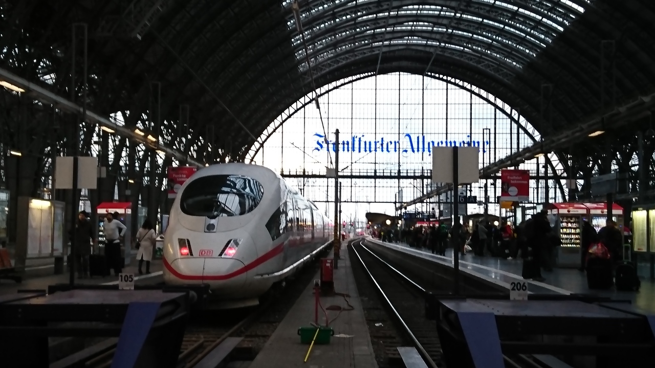 Hbfは中央駅のことで、ドイツの都市にはたいていHbfがあります。Frankfurt am Main Hbfは、ドイツの交通の要所の一つで、ICEやICなどの長距離列車やRBなどの中距離列車が地上ホームから、SバーンとUバーンが地かホームで、それぞれ地下道でつながっています。表示もしっかりあり、フランクフルト空港方面の列車には、飛行機のマークがついているので、初心者でも苦労はしないと思います。地上ホームは、ミュンヘンHbfと同じような行き止まり式の駅で飲食店や本屋なども揃っており便利。雰囲気も似ています。結構治安が悪いので、注意に越したことはないです。