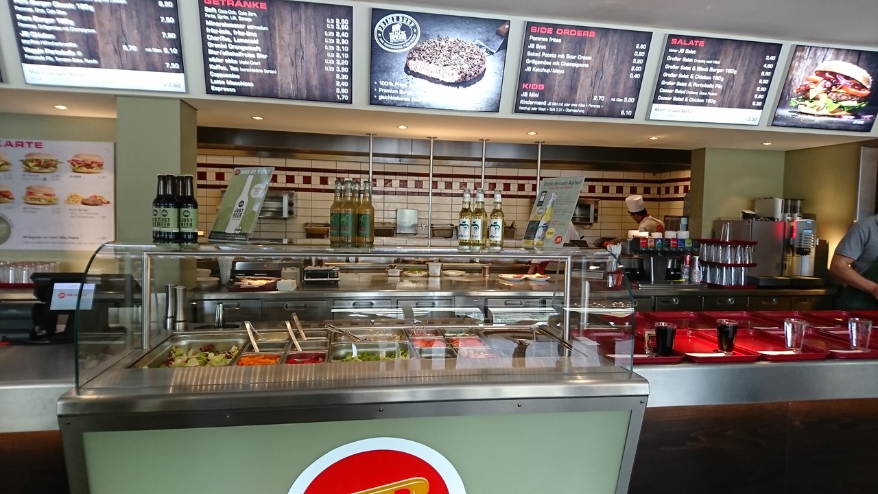 ハノーバー中央駅(Hannover Hbf)から徒歩数分、UパーンのKropke駅前にあるバーガーレストラン。日本で言うファミレスとマックの中間のようなお店で、ビールやワインも飲めます。お店の2階は、思ったよりも静かで、ゆっくり食事をしながらおしゃべりをしても気にならない感じ。本格的なバーガーが売りで、お店の奥の厨房でお肉を焼いてくれます。お肉は日本人としては少しパサパサしているように感じましたが、多分、ドイツ人好みなんだと思います。サラダをメインにバーガーを付けましたが、半端でない量で、 お腹がいっぱいになります。日曜日もやっています。
