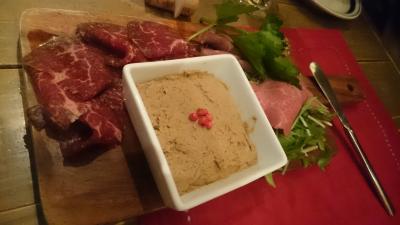 熟成肉とワインがおいしいお店、お肉はうまみたっぷりの熟成ビーフで、焼きあがるのはお店に入ってから1時間くらい。脂身も含めてお肉は、意外とさっぱりしていますが、お肉そのものの味わいがあって、赤身のおいしさがよくわかります。旨みが凝縮されているという印象。お肉の前に出てきたローストビーフやグラタンもワインに合って美味。ただ、ワインも含めると結構高いのと、コースが2時間なので、話が弾んできた頃に終わってしまうところが少し難。