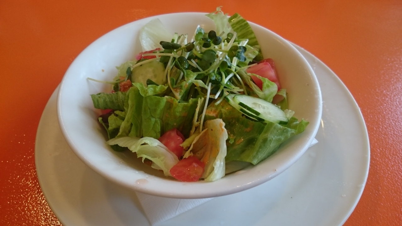 高崎のB級グルメの代表、最近メジャーになりつつる「高崎パスタ」の元祖のお店の本店。いずれは読売テレビ「ケンミンショー」で紹介されそうな雰囲気。高崎や前橋、伊勢崎にも複数の店舗を構えているとのことです。日曜の12時少し前に行きましたが、結構広めの駐車場には車がいっぱい。群馬県以外のナンバーも多く止まっていました。8組くらい並んでいて待つこと30分くらい。あまり回転はよくない印象。店頭には高崎らしく大きなだるまが置いてありました。ランチセットがお得と聞いたのですが、名物の「シャンゴ風」が食べたくて、ミニサラダとドリンクがセットになったaセットをオーダー。注文の際の店員さんは、まるでコントの如く、注文を間違えて繰り返してくれたので笑いました。ミニサラダと言えども結構なボリューム(普通サイズのサラダはかなり大きそう)。味はさっぱり系のドレッシングです。「シャンゴ風」は、ミートソースにカツがのっています。ミートソースは見た目よりも酸味が効いていて、甘味もあります。味噌が隠し味の模様。カツはサクサクでミートソースとフィット。パスタは中太タイプで、茹で方は日本風。少ししつこさがあります。結構なボリュームがありSサイズで十分かも。群馬の新しいソウルフードだと思います。