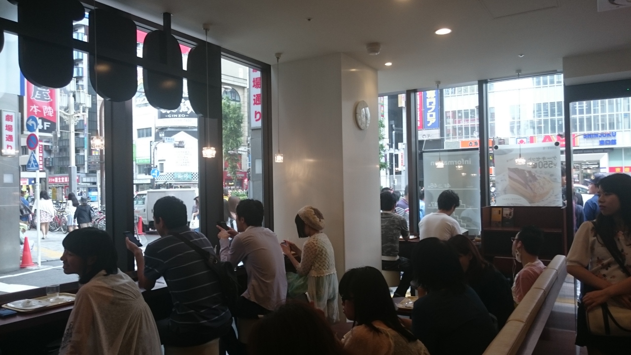 西武新宿駅前、歌舞伎町の入り口にあるドトールコーヒー。地下1階から4階までが店舗で、エレベーターもあるので、ドトールビルの様相。飲み物はオーダーしたカウンターで受け取りますが、ホットドックなどは別のカウンターで受け取るところが他店とは若干違うかも。1階以外は50席前後ありますが、場所が場所だけに結構混雑。4階が喫煙席で他は禁煙席です。時間潰しにはいい場所だと思います。
