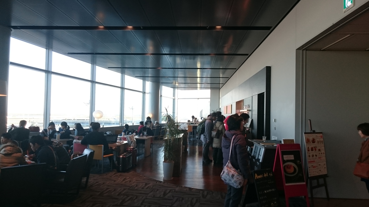 羽田空港国内線第1ターミナルの3階のマーケットプレイスにあり、南ウイングからは直通のエスカレーターが、北ウイングからもそう遠くなく、大体中間地点にあります。オープン席ですが、BGMが空港内のアナウンスをかき消すように流れています。飛行機に乗る迄の時間潰しには便利。結構混雑していますが、場所柄、回転も早いです。