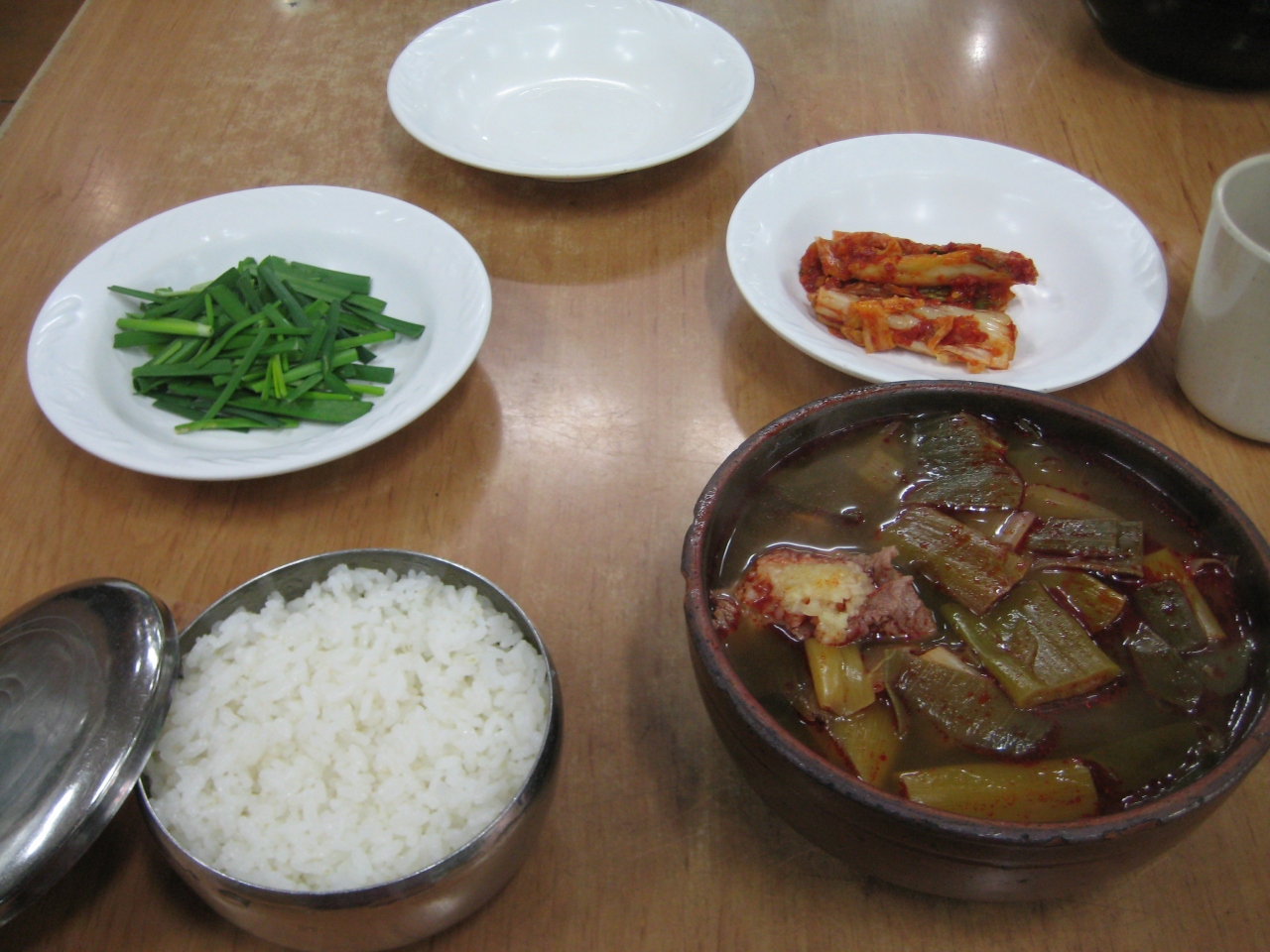 「タロクッパ」発祥の店と言われている創業1946年の食堂で、お店の窓に「XX年の伝統!」掲げています。「タロクッパ」とは、単なる「クッパ」とは異なり、スープにごはんを自分で入れたり、浸しながら食べたり、別々で食べたりできるものです。唐辛子を煮込んだ深みのある辛さは、ソウルではなかなか味わえないくらいの激辛で、ご飯と一緒でないと苦しいです。朝鮮戦争の時に避難してきた人に栄養をつけるために作ったといわれるこのタロクッパには「ソンジ」と呼ばれる牛の血を固めたものが入っています。食感は寒天を固めたようなものに近いのですが、レバーよりも癖がある感じで、少々厳しいかも。「ソンジ」を抜いたタロクッパもあるそうです。労働者向けに出すので、あまりグツグツ言わないうちに運ばれるので、猫舌の人にはいいかもしれません。