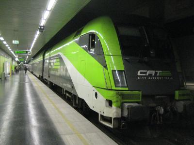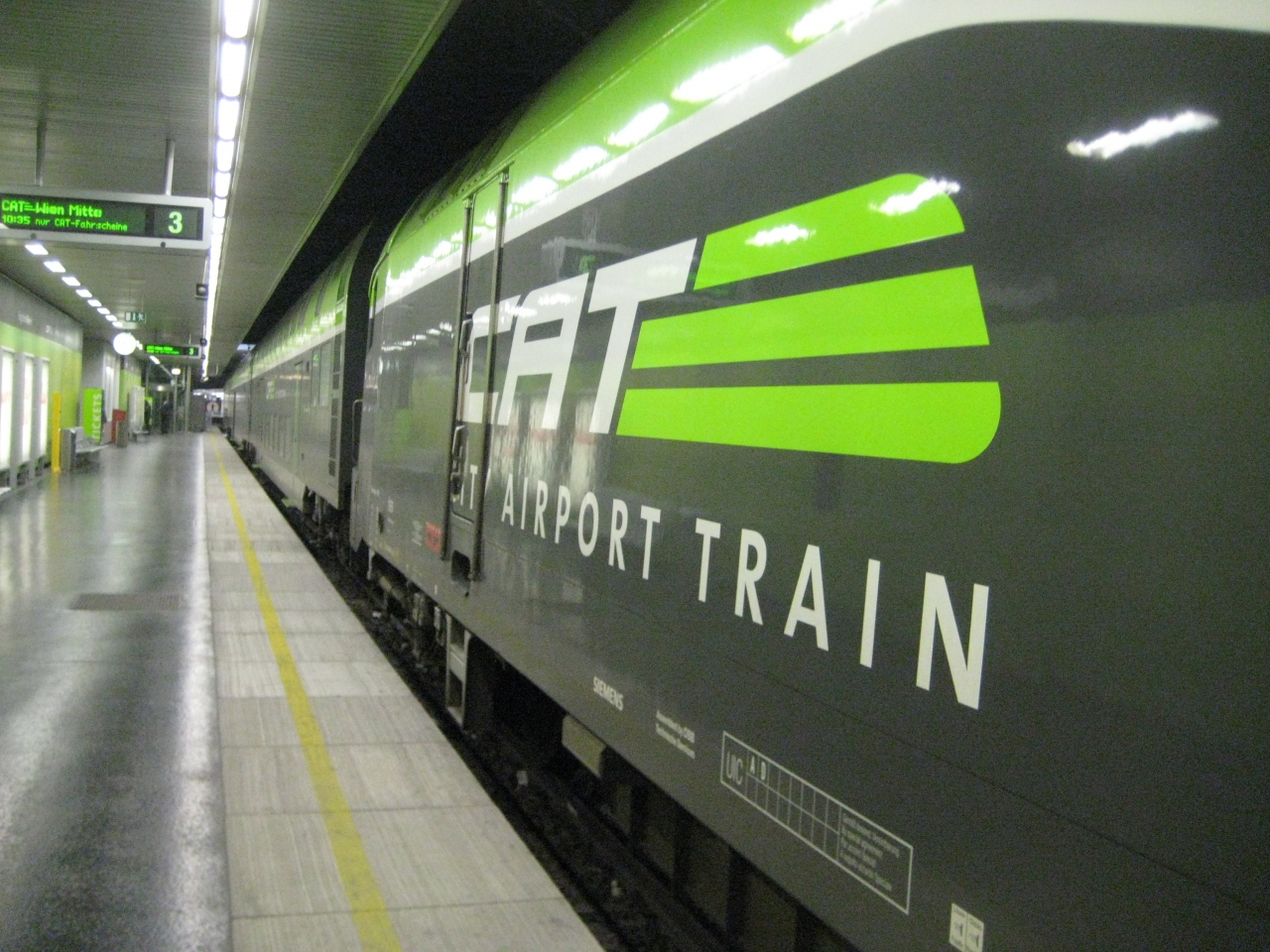 ウィーン国際空港(Flughafen Wien)とウィーンミッテ(Wien Mitte)駅をノンストップ、16分で結ぶ空港連絡列車で、通称「CAT」。30分間隔で運転しており、車内でチケットを購入することも可能ですが、駅で買うよりも高くなります。ミッテ駅では、オーストリア航空やルフトハンザなどスターアライアンスのウィーン空港発ののチェックインが可能です。二階建ての車両は落書きなどなく、清潔です。ただ、空港駅とウィーン・ミッテ駅間は各駅停車のSバーンも運行しており25分ほどかかりますが、運賃が半額以下なので、利用するのは観光客が多く、結構すいています。
