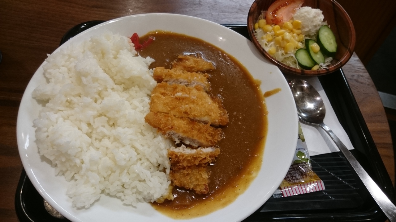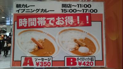 八重洲地下街にある銀だこのお店。立ち飲み屋で、夜はお酒をのみながら、たこ焼きをつまむ感じのお店ですが、ランチもやっていて、ノーマルなカレーが300円、カツカレーが430円と激安。+120円でサラダ、+70円で大盛りになります。カレーは、家庭風で、ニンジンがごろっとしているタイプ。カツは揚げたてとはいかないものの、その場で揚げています。コスパが良すぎるランチならここです。テイクアウトもあり、ランチ時でもたこ焼きも食べられます。