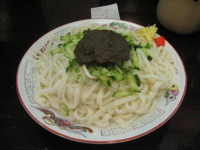 盛岡の老舗百貨店川徳の地下の食堂街にある盛岡三大麺のひとつとして有名な「じゃじゃ麺」の元祖のお店の分店。本店の場合、並んで待つと外になるのですが、こちらの場合はビルの中なので寒くないのがいいです。盛岡名物だけあって、観光客もちらほら。でも地元の方のほうが多いです。きゅうり、ネギのみじん切り、味噌がたっぷりのった温かい平打ち麺に、ニンニクや酢、ラー油などを好みで合わせて混ぜて食べる独特の料理は好みが分かれるようですが、ジャージャー麺よりも日本人向きだと思います。麺を食べ終えた後に、食器の器に生卵と肉味噌、ネギ、さらに茹で汁を入れてもらい、かきまぜて食べる「ちいたんたん」は、別の味で美味。寒い盛岡だからこそ味わえるような温かい味。麺の切れ端などが入っているとさらに美味しいので、少しだけ残すようにしています。二つの味が楽しめるご当地麺だと思います。