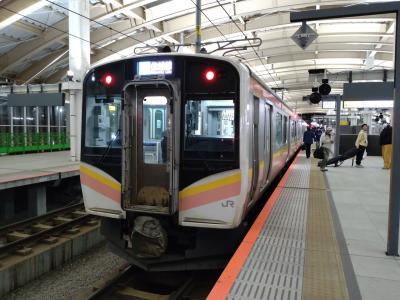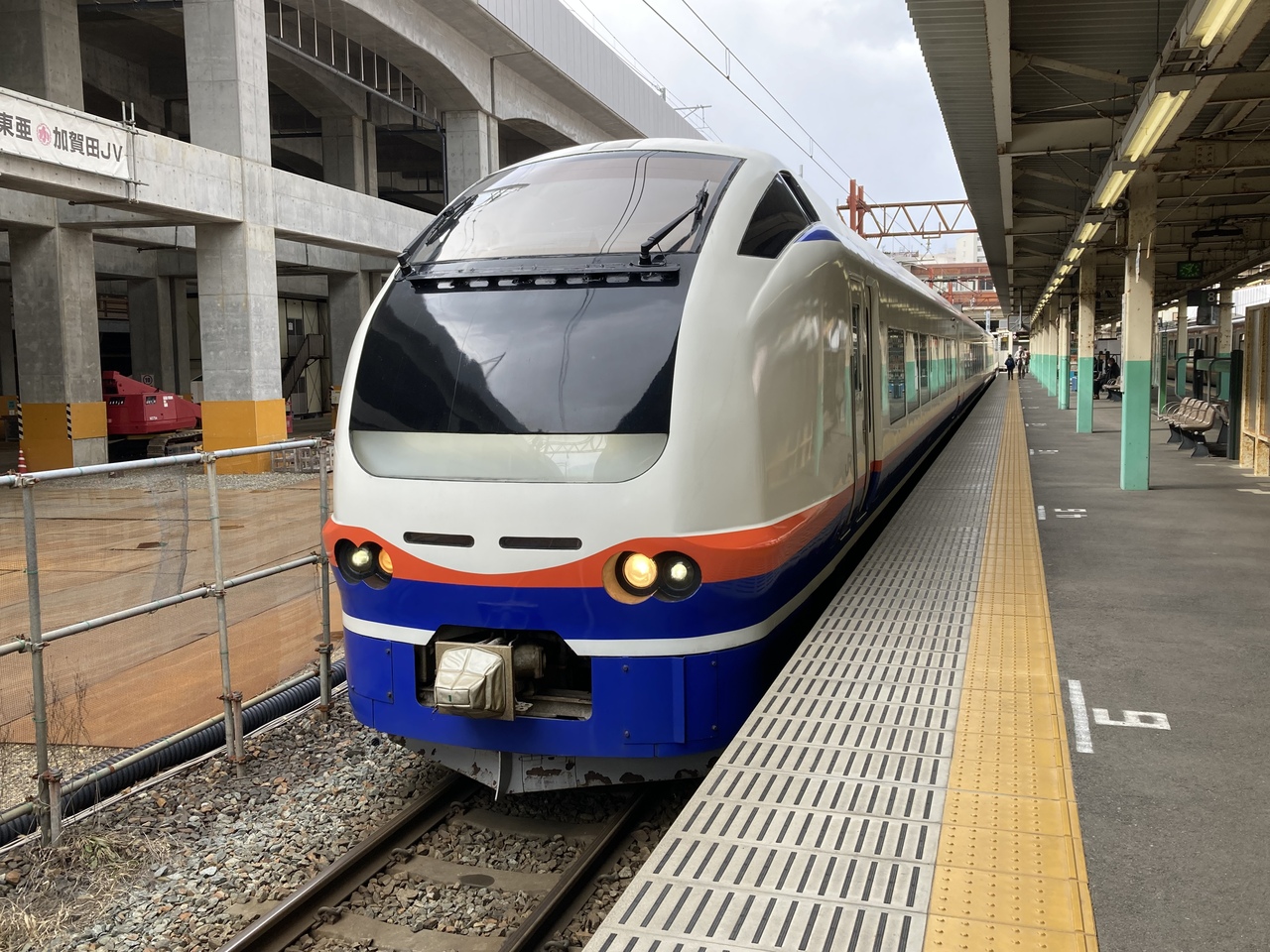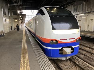 新潟から直江津まで乗車しましたが、途中、新津、加茂、東三条、見附とこまめに停まりますが、あまり乗降客は多くない印象。長岡からは新幹線から乗換客と見られる乗客が多数乗車。柏崎、柿崎、直江津で少しずつ乗客が減っていきました。以前は常磐線特急「フレッシュひたち」で用いられていたE657系の付属編成の4両編成が用いられており、グリーン車はない。新潟発の場合、直江津寄りの前方2両が指定席、後方2両が自由席ですが、繁盛期を除けば自由席でも座れないことはないと思います。また、車内販売はありません。